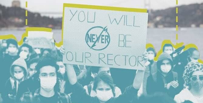 «Οι Φοιτητικοί Σύλλογοι στεκόμαστε αλληλέγγυοι στον σκληρό αγώνα των φοιτητών και της πανεπιστημιακής κοινότητας στην Τουρκία ενάντια στον διορισμό των διοικήσεων των τουρκικών πανεπιστημίων από την κυβέρνηση Ερντογάν.