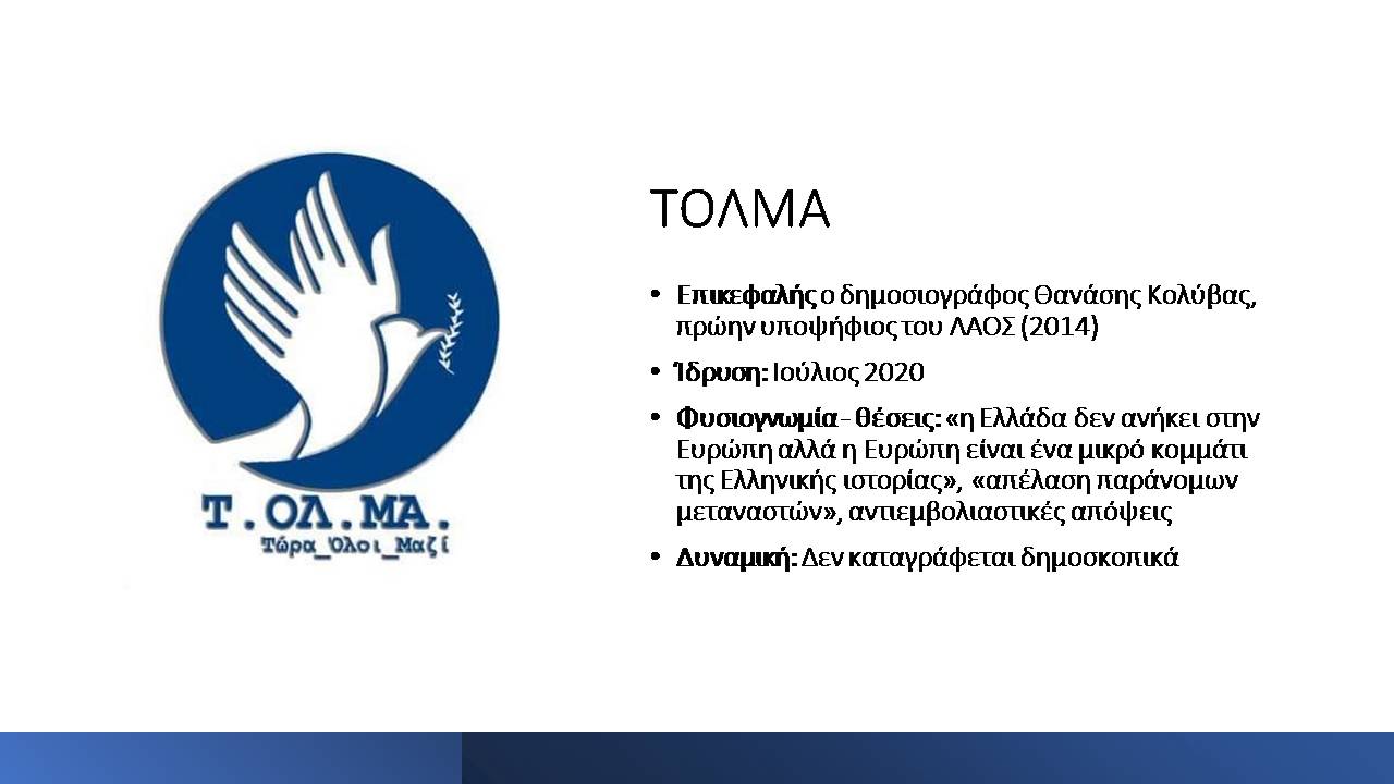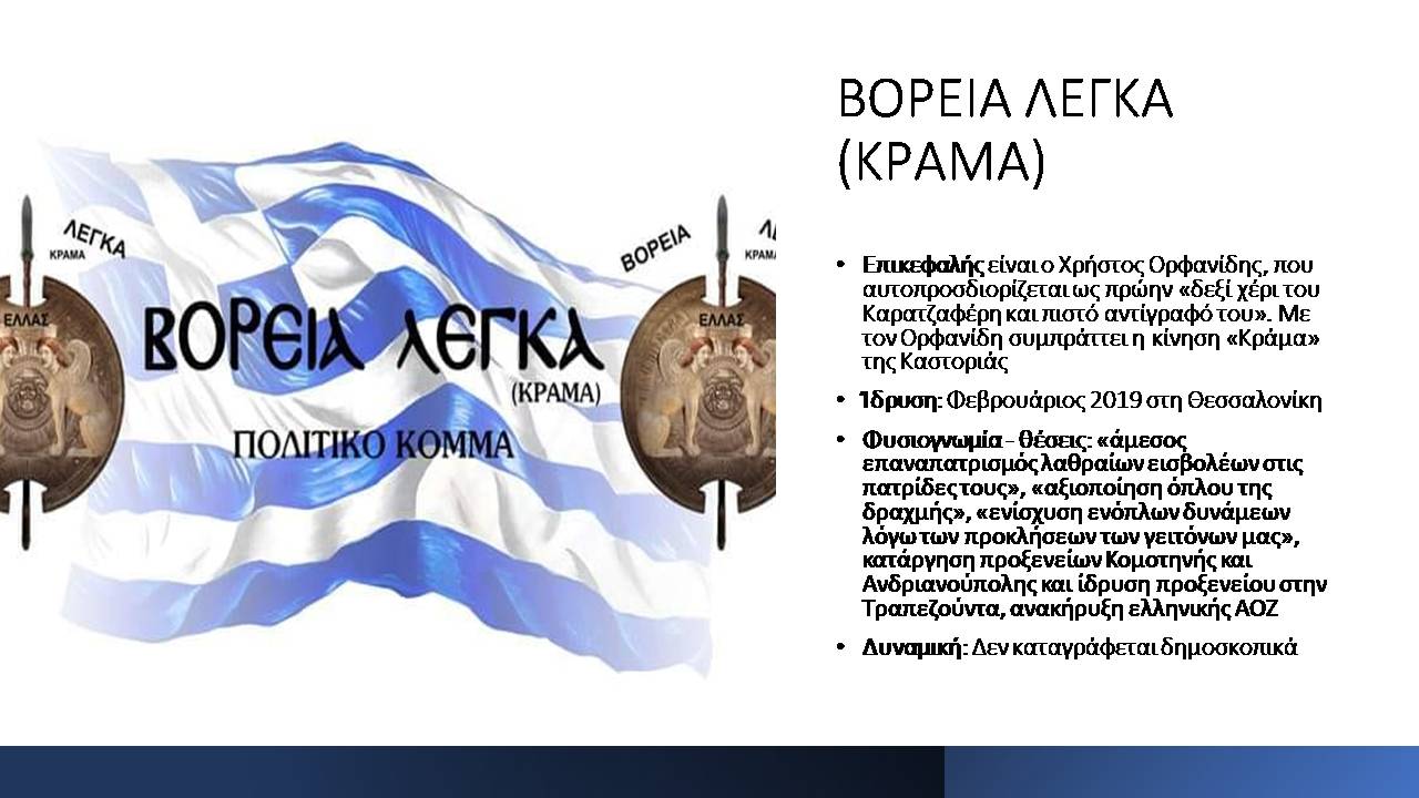 -Οι συνδυασμοί «Ελληνική Λύση»/Κ. Βελόπουλος, «Βόρεια Λέγκα – Κράμα»/Χρ. Ορφανίδης, «Νίκη»/Δ. Νατσιός και «ΤΟΛΜΑ»/Θ. Κολύβας έχουν επίκεντρο τη Θεσσαλονίκη και την ευρύτερη Βόρεια Ελλάδα (Καβάλα, Κιλκίς, Καστοριά). Αν εδώ προστεθεί και ο «κομμένος» Πρόδρομος Εμφιετζόγλου, γίνεται εμφανές ότι η «παραγωγή» του ακροδεξιού μηνύματος χρειάζεται να αναλύεται και με βάση τη διαιρετική τομή «κέντρο-περιφέρεια» (θυμίζουμε εδώ, ενδεικτικά, την αγροτική ψήφο στη Χρυσή Αυγή σε προηγούμενες αναμετρήσεις).