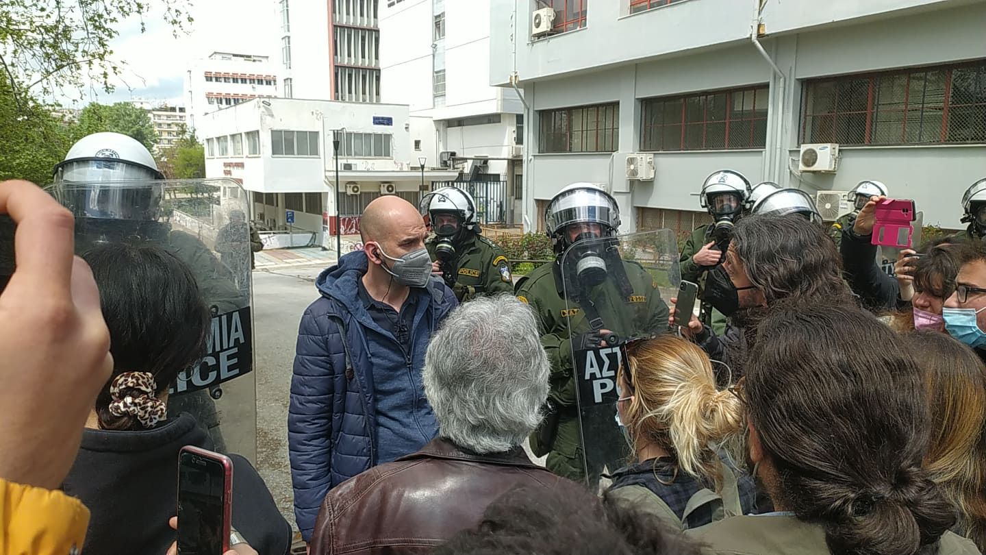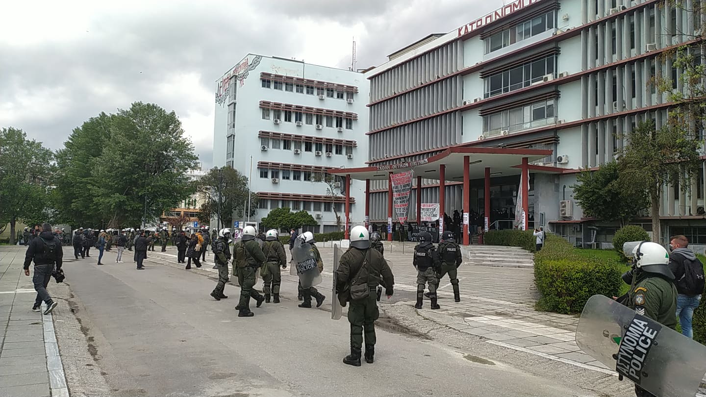 Οι αστυνομικές δυνάμεις δημιούργησαν κλοιό γύρω από τους συγκεντρωμένους φοιτητές, ενώ η αστυνομία δεν επέτρεπε σε μέλη φοιτητικών συλλόγων που είχαν νωρίτερα πραγματοποιήσει συγκέντρωση διαμαρτυρίας μπροστά στην Πρυτανεία του ΑΠΘ, να προσεγγίσει τους αποκλεισμένους συμφοιτητές τους και τους κρατά, επίσης, αποκλεισμένους μπροστά στη Γεωπονική Σχολή.