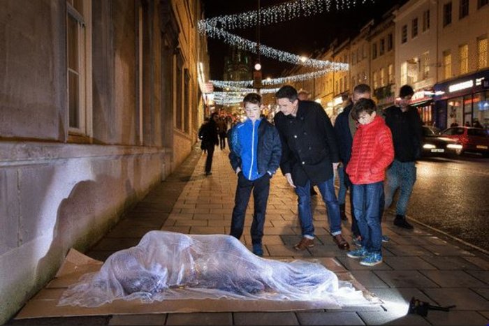 Εμφανίστηκε για λίγο στην Park Street, στη γέφυρα του Μπρίστολ και στο Stokes Croft με στόχο να κάνει τους ανθρώπους να σκεφτούν περισσότερο τους άστεγους, τώρα που πλησιάζουν τα Χριστούγεννα.