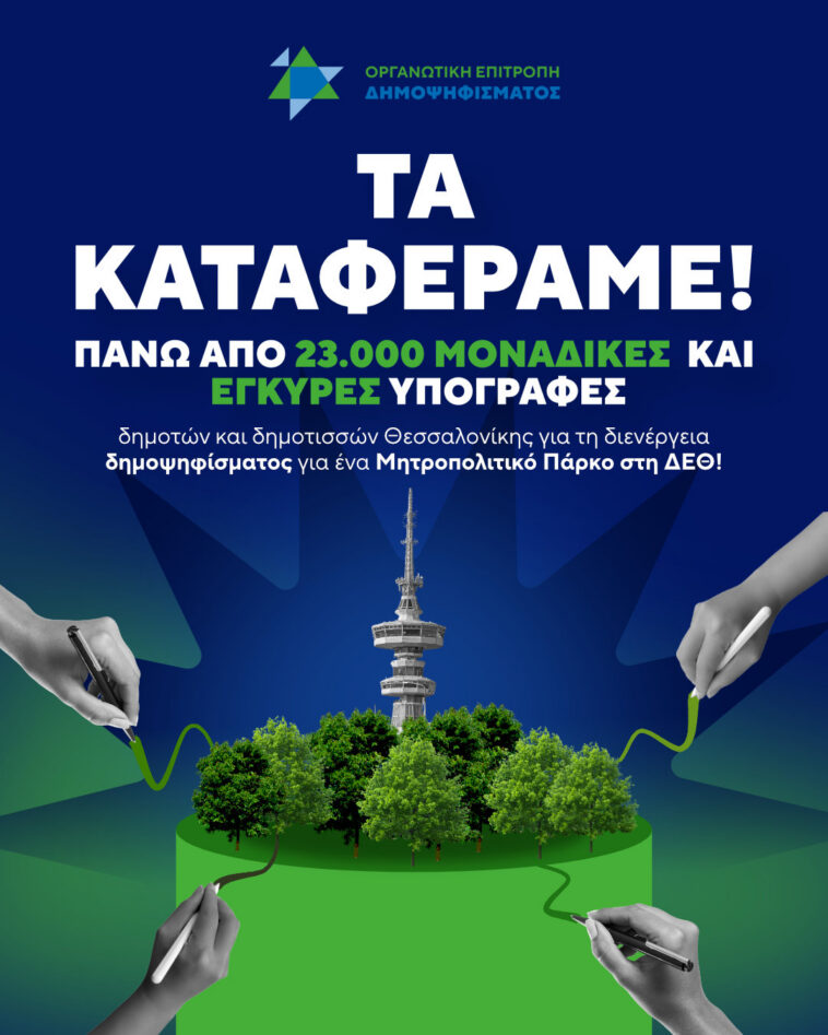Αυτό που φαινόταν πριν δέκα μήνες απλησίαστο τώρα έγινε κατορθωτό. Όπως ανακοίνωσε η Οργανωτική Επιτροπή Δημοψηφίσματος μετά και τους τελευταίους ελέγχους, το αίτημα για τη διενέργεια δημοψηφίσματος για τη ΔΕΘ έχει ήδη συγκεντρώσει πάνω από 23.000 μοναδικές και έγκυρες υπογραφές δημοτών και δημοτισσών Θεσσαλονίκης.