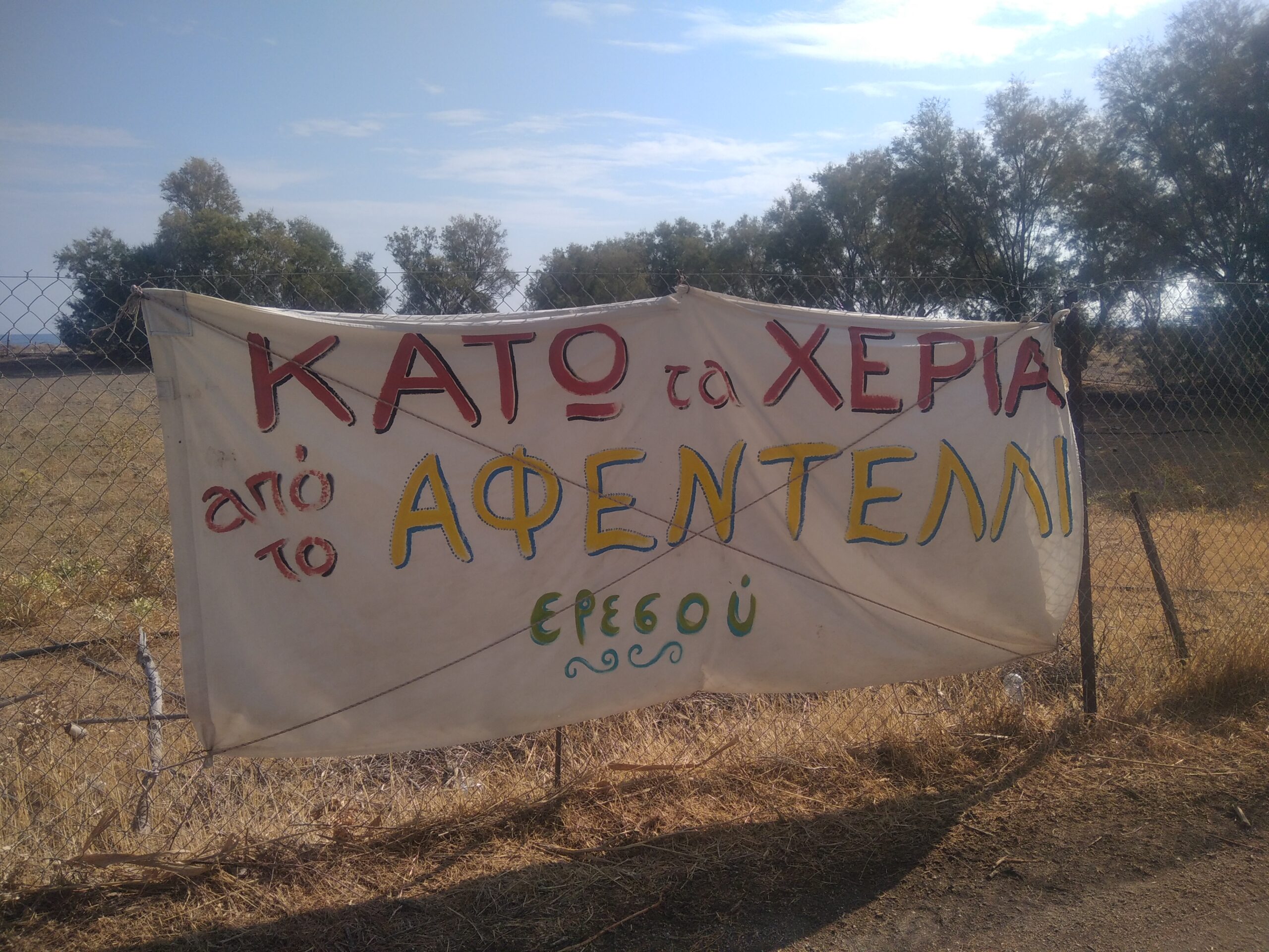 «Εμείς συνειδητοποιήσαμε τι πάει να συμβεί τον Μάιο του 2021 όταν εμφανίζεται στο διαδίκτυο ότι ο Δήμος Δυτικής Λέσβου προτείνει κάποια έργα από το πρόγραμμα “Αντώνης Τρίτσης” για την περιοχή μας και συγκεκριμένα ένα θεματικό πάρκο εντός δημοτικού οικοπέδου πάνω στην παραλία. Ο κόσμος άρχισε τότε να οργανώνεται στη λογική ότι επιχειρείται η αλλοίωση της παραλίας με ένα έργο που δεν ζήτησε ποτέ η κοινότητα. Επιπλέον, εκτιμούσαμε ότι μια τέτοια εξέλιξη θα χρησιμοποιούνταν ως δούρειος ίππος για περαιτέρω τσιμεντοποίηση της παραλίας. Ο Δήμος Δυτικής Λέσβου χαρακτήριζε τότε τις ενστάσεις μας “επιστημονική φαντασία”. Το ζήτημα του θεματικού πάρκου πάγωσε μέσα από συλλογή υπογραφών, όταν ένας συγχωριανός μας ανακάλυψε κάτι άλλο: την προέγκριση οικοδομικής άδειας που έλαβε ιδιώτης, δικηγόρος στο νησί, για κατασκευή τεσσάρων βιλών, εστιατορίου, αποθηκευτικού χώρου, πάρκινγκ και γηπέδου beach volley στην περιοχή Αφεντέλι της Σκάλας Ερεσού» αναφέρει ο Στέλιος Κόβρας.