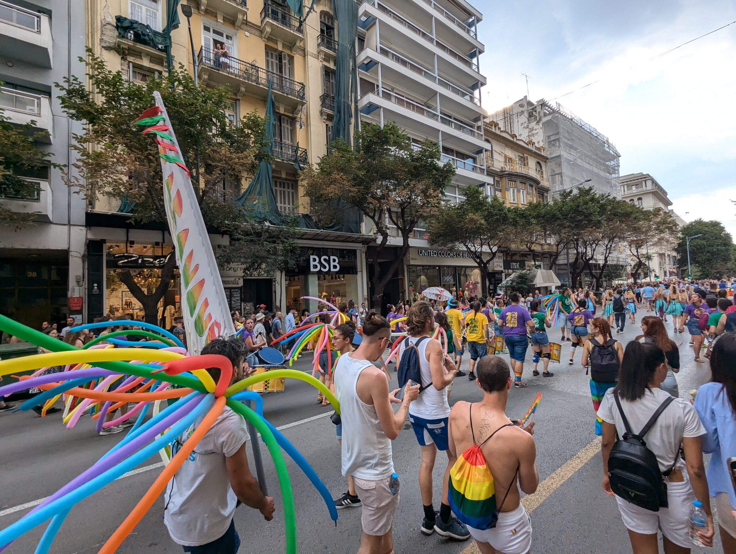 Με τις σημαίες της ΛΟΑΤΚΙ+ κοινότητας, με πολύχρωμες βεντάλιες, μουσικές, χορό και χαμόγελα χιλιάδες κόσμου συμμετείχε στην μεγάλη πορεία υπερηφάνειας που ξεκίνησε από την πλατεία της ΧΑΝΘ, κινήθηκε στις οδούς Τσιμισκή, Βενιζέλου, Λ. Νίκης και ολοκληρώθηκε μπροστά από το Άγαλμα του Μ. Αλεξάνδρου, όπου και ακολούθησε συναυλία.