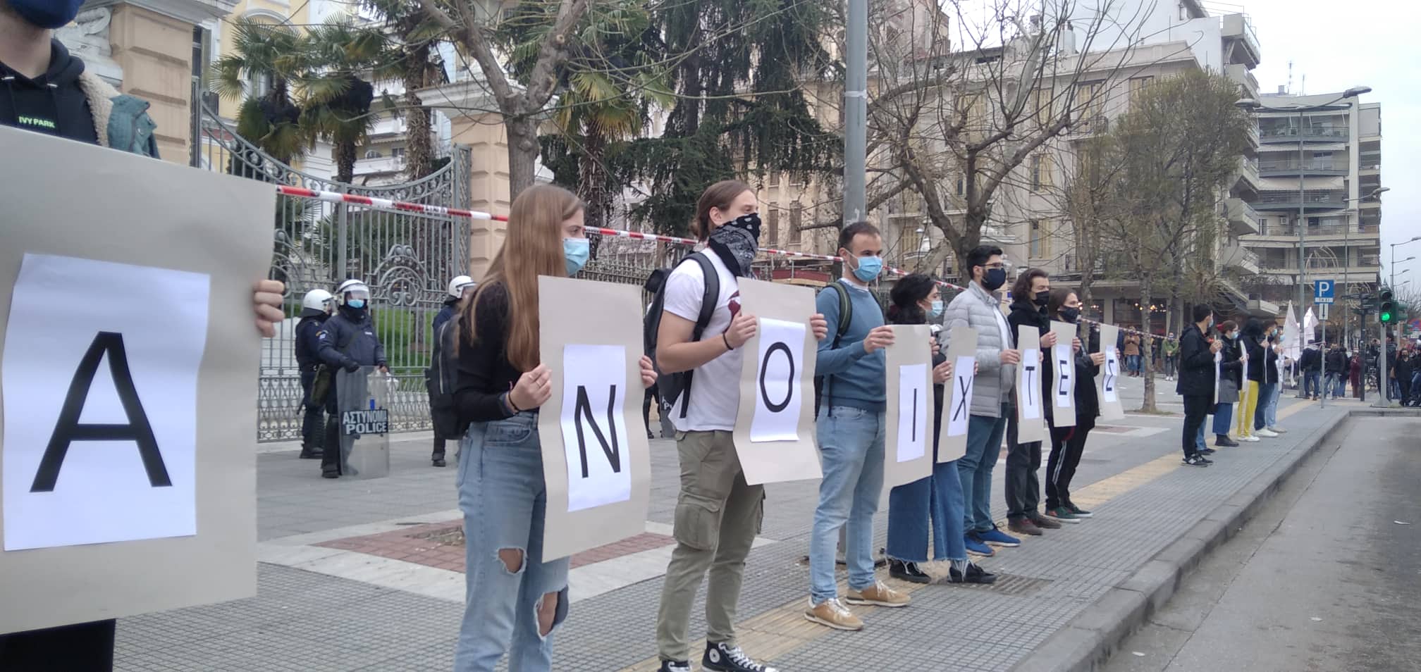 Ανάλογα προβλήματα αντιμετωπίζουν και οι φοιτητές-τριες του ΑΠΘ και του ΠΑΜΑΚ καθώς εδώ και ένα χρόνο τα πανεπιστήμια είναι κλειστά. Η τηλεκπαίδευση δεν μπορεί να λειτουργήσει στη διεξαγωγή κάποιων μαθημάτων που απαιτούν την δια ζώσης διδασκαλία και πολλοί φοιτητές κινδυνεύουν να χάσουν το εξάμηνο. Έτσι για ακόμη μια φορά οι φοιτητές ζήτησαν «να ξαναγίνουν φοιτητές», αίτημα που αποτύπωσαν και σε πικέτες έξω από το ΥΜΑΘ στο οποίο κατέληξε η διαδήλωση.
