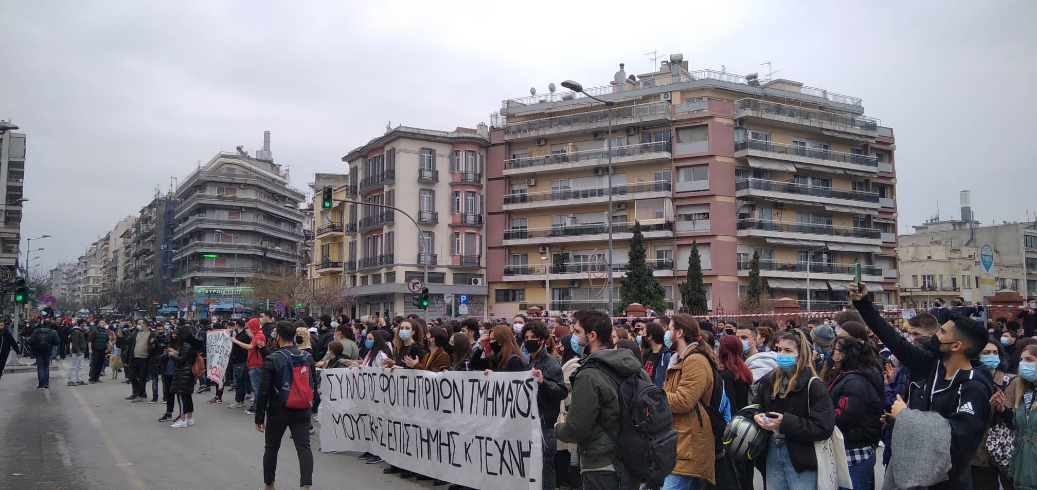 Την απόσυρση του νόμου Κεραμέως – Χρυσοχοϊδη ζήτησαν χιλιάδες φοιτητές και φοιτήτριες που βγήκαν στους δρόμους της Θεσσαλονίκης ξεκαθαρίζοντας ότι «τα περιστατικά καταστολής δεν τους φοβίζουν, αντίθετα τους εξοργίζουν». Οι φοιτητικοί σύλλογοι πραγματοποίησαν ένα πολύ μαζικό συλλαλητήριο, που προετοίμαζαν εδώ και μέρες, προειδοποιώντας ότι δεν θα επιτρέψουν σε καμία περίπτωση την είσοδο της αστυνομίας στα πανεπιστήμια.