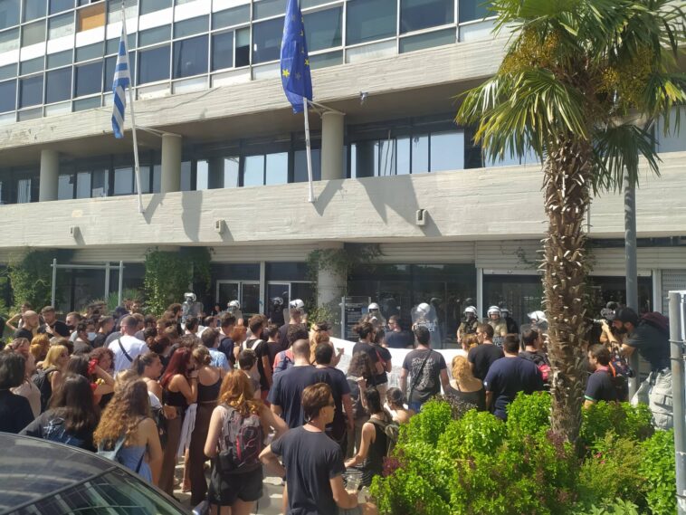 Μαζική συγκέντρωση έξω από την πρυτανεία και πορεία μέσα στο campus του ΑΠΘ πραγματοποίησαν το μεσημέρι της Παρασκευής φοιτητές και φοιτήτριες, ενάντια στην πολύμηνη αστυνομική παρουσία μέσα στο πανεπιστήμιο, ενάντια στην ίδρυση της πανεπιστημιακής αστυνομίας, καθώς και στην τοποθέτηση συστήματος ελέγχου της εισόδου στο κτίριο διοίκησης.