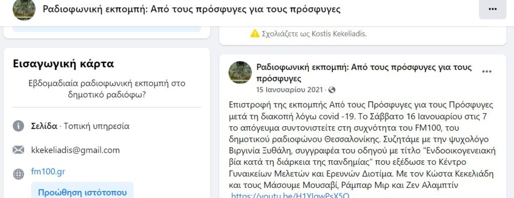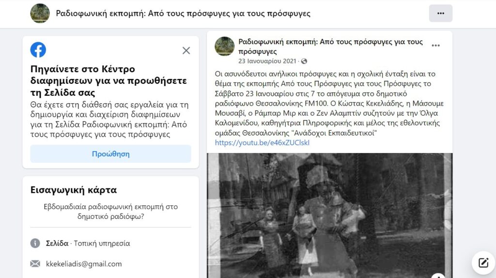 Η υπόθεση με δύο λόγια: Τον Μάιο του 2019 ανέλαβα συντονιστής ομάδας νεαρών προσφύγων για την παραγωγή της εκπομπής «Από τους Πρόσφυγες για τους Πρόσφυγες» στον FM100. Σύμφωνα με τη σύμβαση έπρεπε να παραχθούν συνολικά 72 εβδομαδιαίες εκπομπές στις περισσότερο ομιλούμενες γλώσσες των προσφύγων που ζουν στην ευρύτερη περιοχή της Θεσσαλονίκης, με σκοπό να γίνει ένα βήμα για την αλληλοκατανόηση γηγενών και προσφύγων και την ένταξη των τελευταίων στη ζωή της πόλης.