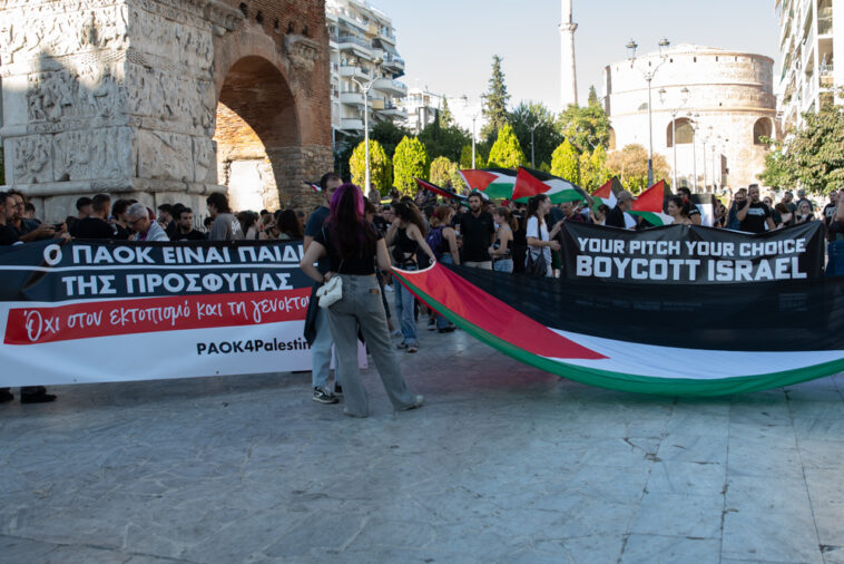 Ωστόσο ο λαός του ΠΑΟΚ, οι φίλαθλοι αντιφασίστες του ΠΑΟΚ, λίγες μέρες πριν, πήραν την πρωτοβουλία συγκεντρώνοντας σε σύντομο διάστημα πάνω από 2000 υπογραφές ζητώντας την ματαίωση του αγώνα. Η πρωτοβουλία paok4palestine εκτός από την συλλογή υπογραφών, πραγματοποίησε εχθές πριν το ματς, πορεία διαμαρτυρίας από την Καμάρα ως το γήπεδο της Τούμπας με τη συμμετοχή και μελών της παλαιστινιακής κοινότητας, καθώς η παρουσία ισχυρών αστυνομικών δυνάμεων ήταν διαρκής. Παρά την προσπάθεια της αστυνομίας να περιορίσει την ειρηνική πορεία, αυτή έφτασε πολύ κοντά στο γήπεδο μέχρι την οδό Λαμπράκη. Κι έτσι ο λαός του ΠΑΟΚ δήλωσε την αλληλεγγύη του στον πολύπαθο παλαιστινιακό λαό εκτός αλλά κι εντός γηπέδου, αποτελώντας μια ακόμη δύναμη πίεσης που ασκείται διεθνώς στην υπεύθυνη ΟΥΕΦΑ να πάρει επιτέλους την απόφαση να διακόψει το δικαίωμα του Ισραήλ να συμμετέχει.