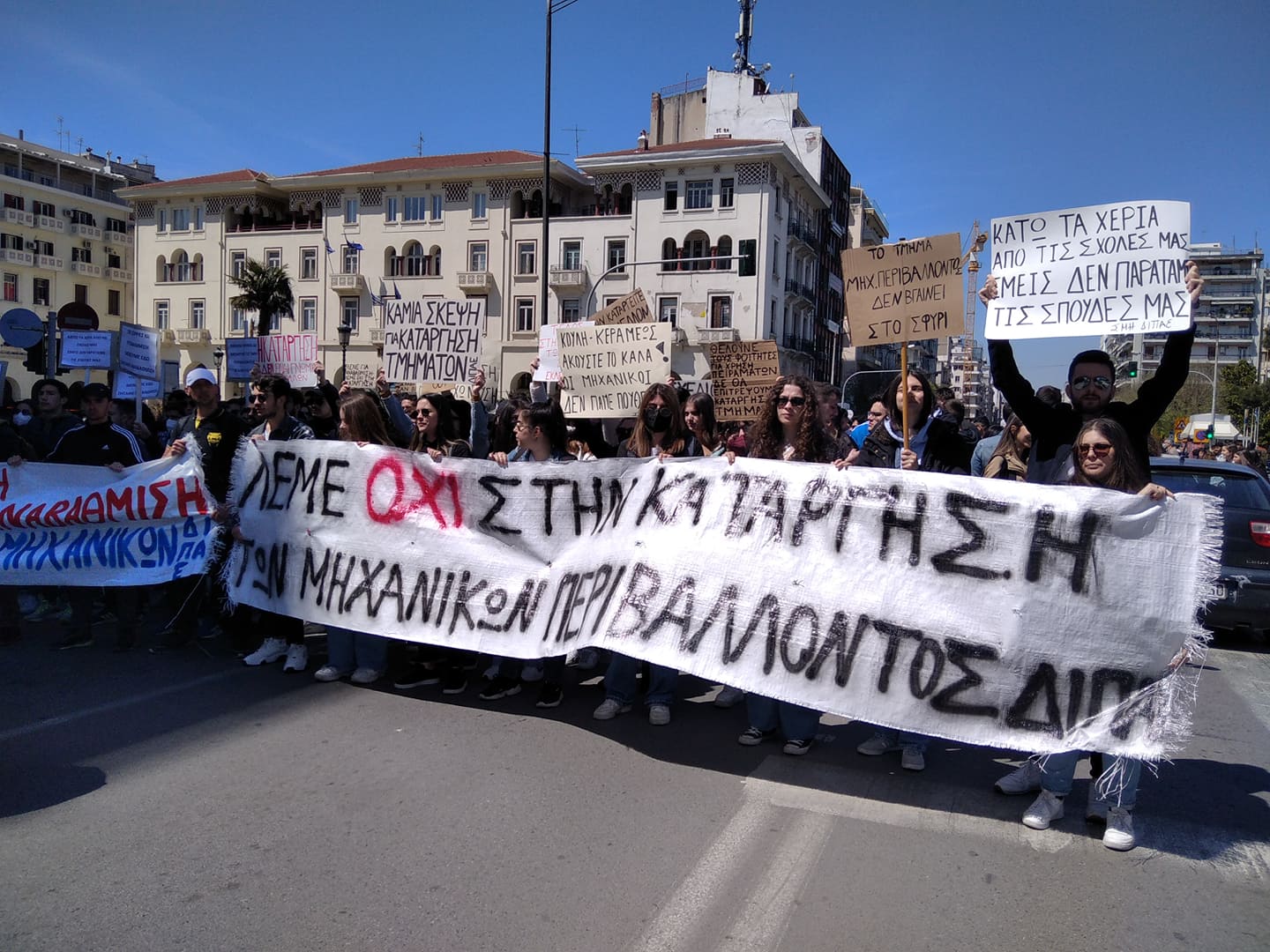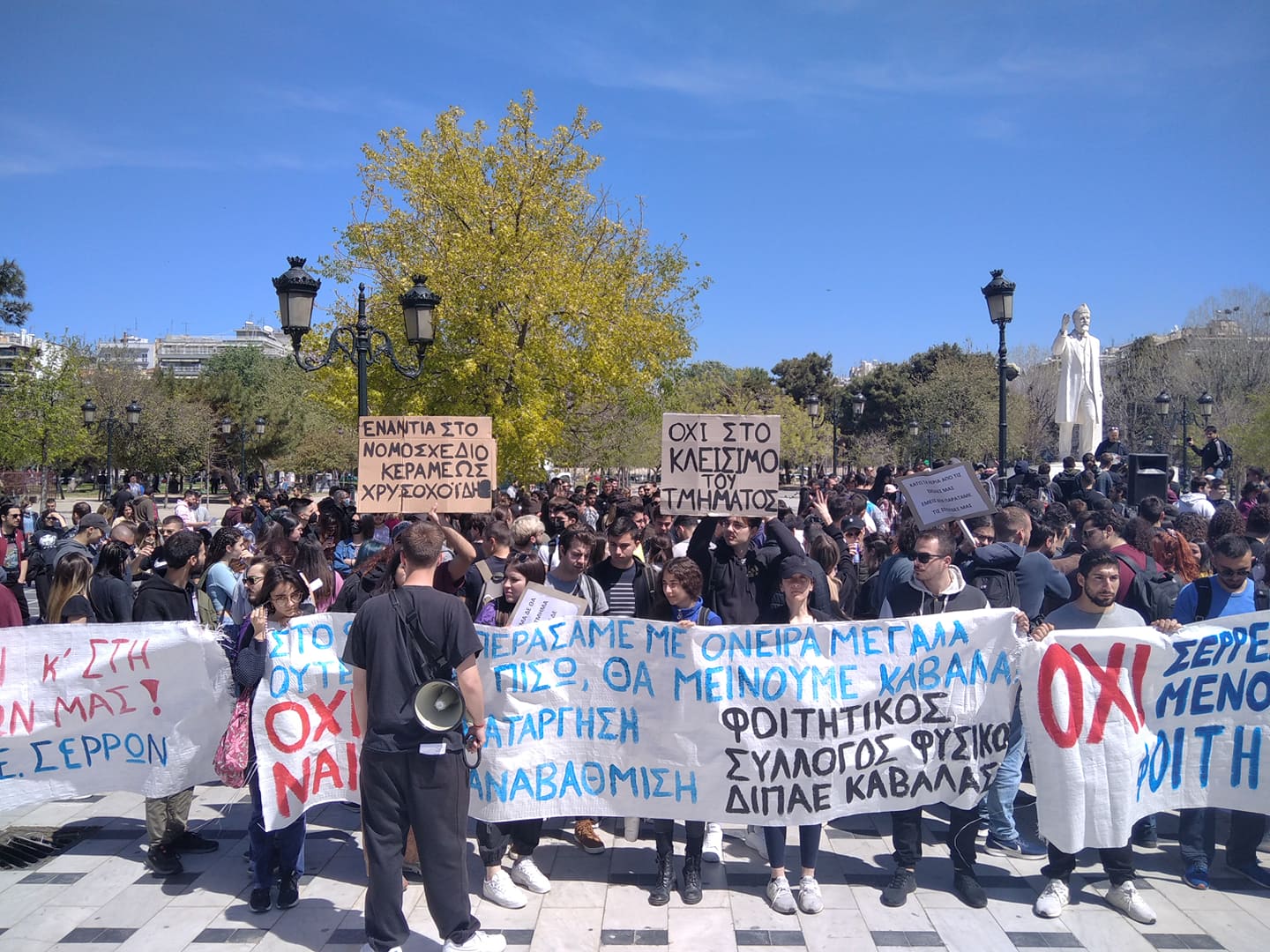Οι Σύλλογοι Φοιτητών του ΔΙΠΑΕ συγκεντρώθηκαν αρχικά στο άγαλμα Βενιζέλου και στη συνέχεια πραγματοποίησαν πορεία στο κέντρο της πόλης μέχρι το ΥΜΑΘ ενάντια σε μια παιδεία «των λίγων και εκλεκτών» ζητώντας την αναβάθμιση των σπουδών τους με στελέχωση των τμημάτων και όχι στην προτεινόμενη κατάργηση τους. Μάλιστα, όπως αναφέρουν, οι προτάσεις για συγχώνευση και κατάργηση τμημάτων ήδη αφορά Τμήματα στην Καβάλα και στη Σέρρες αλλά και άλλα τμήματα πανεπιστημίων της χώρας.