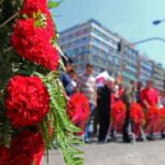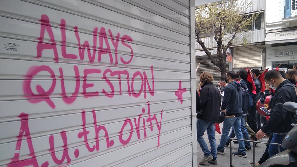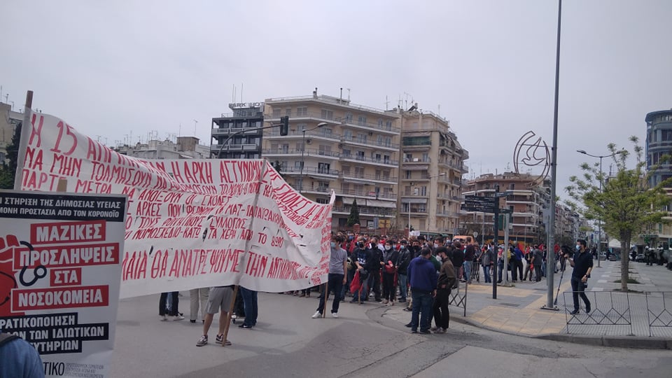 Στην κεφαλή της πορείας διαδήλωσαν οι υγειονομικοί δείχνοντας με αυτόν τον τρόπο τη σύνδεση του αγώνα τους για ενίσχυση του ΕΣΥ με αυτόν των φοιτητών και των φοιτητριών.
