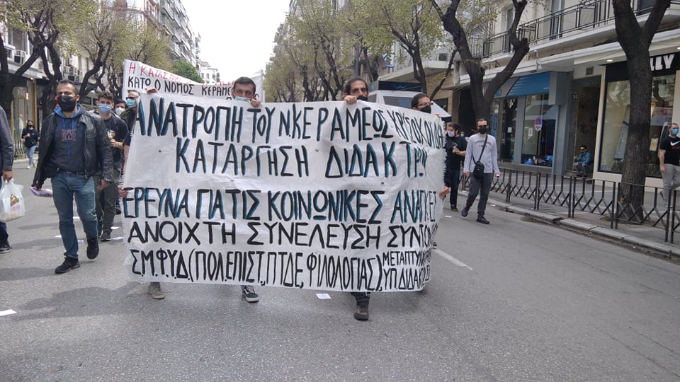 Χιλιάδες φοιτητές-τριες διαδήλωσαν για ακόμη μια μέρα στους δρόμους της Θεσσαλονίκης δηλώνοντας ότι ο νόμος Κεραμέως-Χρυσοχοΐδη θα καταργηθεί στην πράξη. Η σημερινή κινητοποίηση εντάσσεται στις καθημερινές πλέον δράσεις που πραγματοποιούν οι φοιτητικοί σύλλογοι εντός και εκτός του campus του πανεπιστημίου, αποδεικνύοντας ότι το φοιτητικό κίνημα είναι αποφασισμένο να μην επιτρέψει ούτε την είσοδο της αστυνομίας στα πανεπιστήμια αλλά ούτε και την εφαρμογή των άλλων ρυθμίσεων που προβλέπει αυτός ο νόμος.