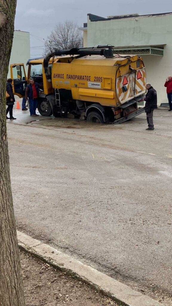 Απίστευτο κι όμως αληθινό. Η αυλή του 5ου Δημοτικού Σχολείου Πυλαίας υπέστη καθίζηση από ένα φορτηγό του δήμου Πυλαίας –Χορτιάτη κατά τη διάρκεια κλαδέματος των δέντρων της αυλής, ενώ το σχολείο λειτουργούσε κανονικά και τα παιδιά ήταν μέσα στις σχολικές αίθουσες.