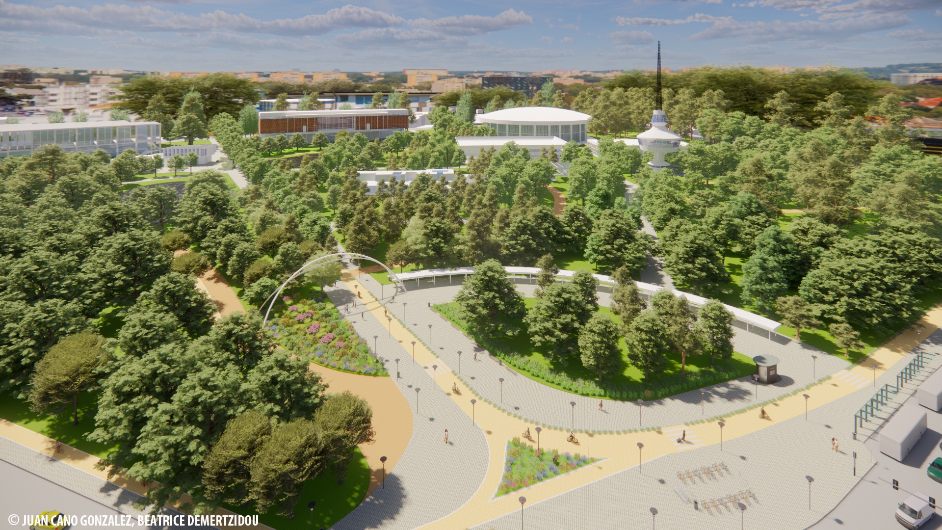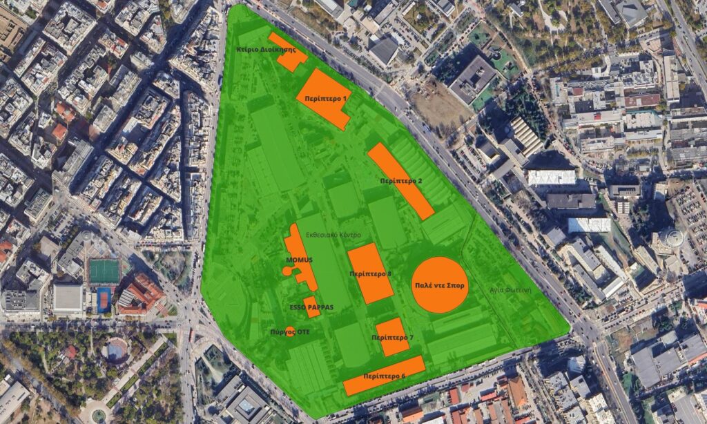 Τα παραπάνω κτίρια συγκεντρώνονται στο βόρειο και ανατολικό τμήμα της έκτασης, απελευθερώνοντας όλη την υπόλοιπη έκταση για τη μετατροπή της σε ένα μεγάλο, ενιαίο πάρκο υψηλου πρασίνου. Η συνολική κάλυψή τους φτάνει περίπου τα 26 στρέμματα, δηλαδή το 13% της περιοχής παρέμβασης (οικόπεδο ΔΕΘ μαζί με την έκταση της Αγίας Φωτεινής). Όλα τους βρίσκονται κοντά στις υφιστάμενες οδούς (Εγνατία, Γ’ Σεπτεμβρίου) ή στο Palais des Sports, και συνεπώς δεν προκαλούν ανάγκες για νέους δρόμους, εντός του πάρκου, για την εξυπηρέτησή τους.