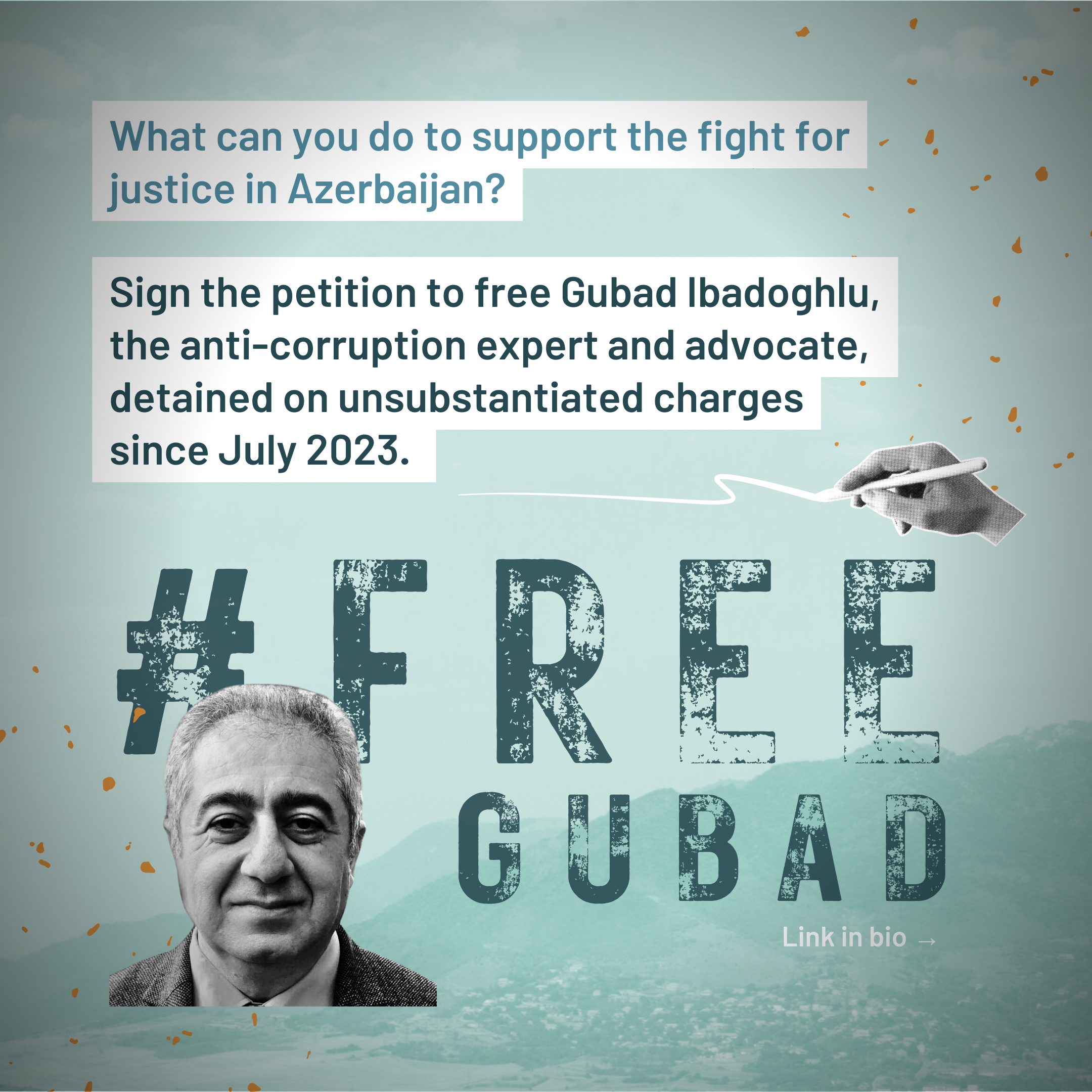 Υπογράψτε: [https://actionnetwork.org/forms/freiheit-fur-dr-gubad-ibadoghlu-klima-und-menschenrechte-verteidigen?source=twitter&] για την απελευθέρωση του Δρ Γκουμπάντ Ιμπντάογλου, οικονομολόγου και επιστήμονα που η κυβέρνηση του Αζερμπαϊτζάν έχει φυλακίσει με αβάσιμες κατηγορίες. Περισσότερες πληροφορίες (αγγλικά): https://freegubad.com/story/