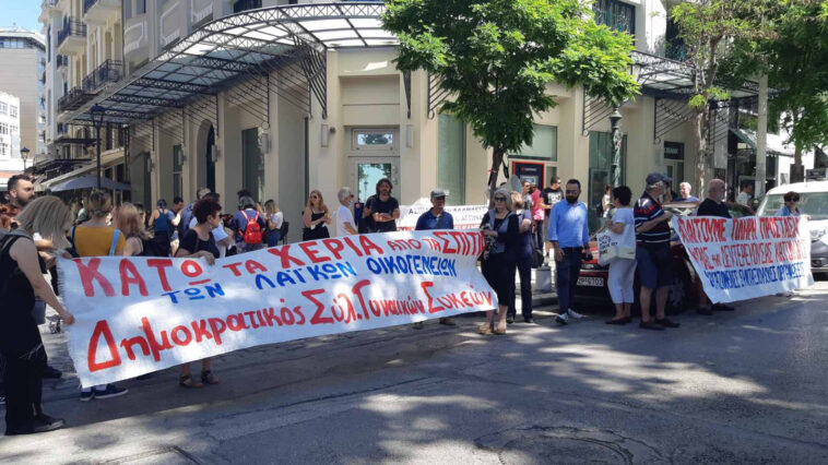Καθημερινά γίνεται όλο και πιο φανερό ότι μετά την κατάργηση του ακατάσχετου της πρώτης κατοικίας το 2015, τα μέτρα υπέρ των τραπεζών και τους ηλεκτρονικούς πλειστηριασμούς που καθιέρωσε η κυβέρνηση ΣΥΡΙΖΑ, σήμερα με την κυβέρνηση της Ν.Δ. και τα μέτρα του Άδωνη Γεωργιάδη δεν υπάρχει πια κανένας απολύτως τρόπος προστασίας της λαϊκής κατοικίας και μικρής περιουσίας από τις αρπακτικές διαθέσεις των τραπεζιτών. Απέναντι σ’ αυτή την κοινωνικά ανάλγητη πολιτική, άλλος δρόμος δεν υπάρχει παρά η κοινωνική αλληλεγγύη κι ο συντονισμένος αγώνας για τη συνολική ανατροπή της. Γι αυτό και ήταν πολύ σημαντική η μαζική συγκέντρωση αλληλεγγύης στην τετραμελή οικογένεια που πραγματοποιήθηκε την Τετάρτη 2 Μάη, με τη συμμετοχή εκατοντάδων κατοίκων από την γειτονιά κι όλη την πόλη, έξω από το σπίτι της οικογένειας και η πορεία που ακολούθησε στους δρόμους των Συκεών και της Νεάπολης.