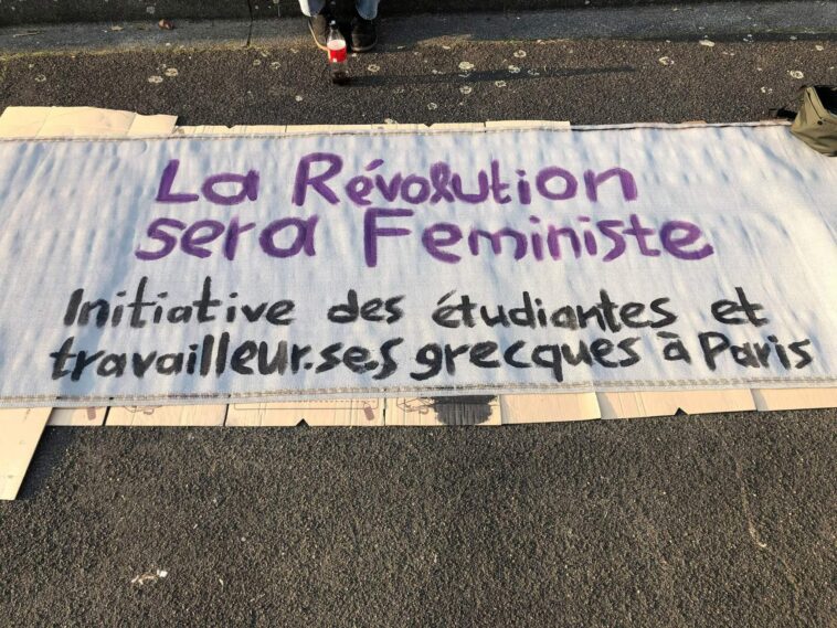 Συντασσόμαστε με τα αδελφ@ μας και στεκόμαστε αλληλέγγυα στο ελληνικό φεμινιστικό κίνημα. Ενώνουμε τις φωνές μας σε Ελλάδα, Γαλλία, παντού στον κόσμο, για να διεκδικήσουμε ισότητα στα πολιτικοκοινωνικά και εργασιακά δικαιώματα και ελευθερία για τα σώματά μας.