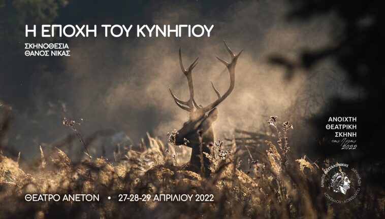 Εμπνευσμένη από την ταινία «Το Κυνήγι» (“Jagten” / “The Hunt”) των Δανών Thomas Vinterberg και Tobias Lindholm, «Η εποχή του κυνηγιού» σε σκηνοθεσία Θάνου Νίκα είναι η νέα παραγωγή της ομάδας θεάτρου Ars Moriendi, η οποία κάνει πρεμιέρα στην «Ανοιχτή Σκηνή της Πόλης 2022» που διοργανώνει η Διεύθυνση Πολιτισμού του Δήμου Θεσσαλονίκης και παρουσιάζεται στις 27, 28 και 29 Απριλίου στο Δημοτικό Θέατρο Άνετον.