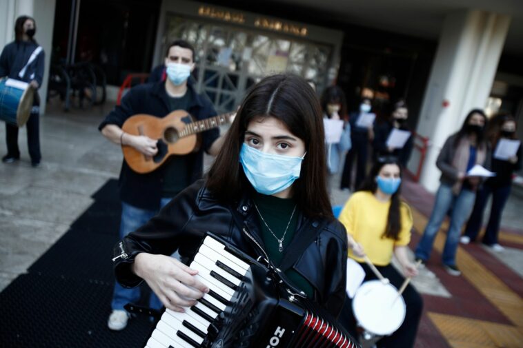 Από τη μουσική διαμαρτυρία φοιτητών και φοιτητριών του Τμήματος Μουσικής Επιστήμης και Τέχνης του Πανεπιστημίου Μακεδονίας.