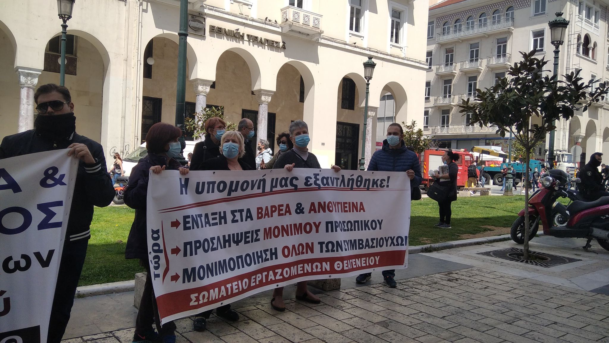 Την κυβερνητική πολιτική που απαξιώνει την υγεία και την ανθρώπινη αξιοπρέπεια κατήγγειλαν υγειονομικοί στη συγκέντρωση που πραγματοποίησαν έξω από την 3η και 4η ΥΠΕ στην Αριστοτέλους μετά από πανελλαδικό κάλεσμα της ΠΟΕΔΗΝ.