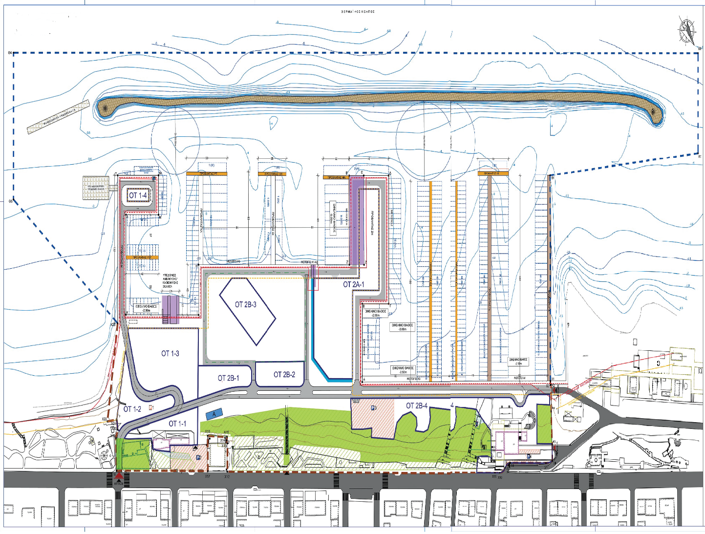 ΟΤ: Τα οικοδομικά τετράγωνα όπου θα χτιστούν επιπλέον 12.500 τ.μ. από τα 2.400 τ.μ. που υπάρχουν σήμερα. Στο ΟΤ 2Α-1 θα χτιστεί το 2όροφο ξενοδοχείο-σουίτες των 8.000 τ.μ.