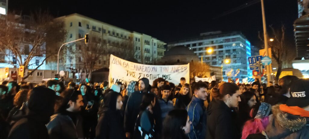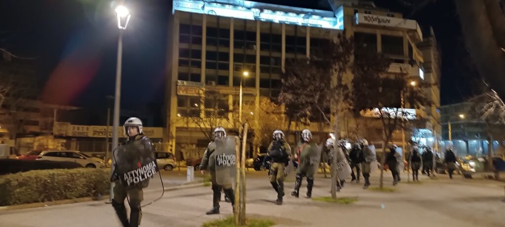 Η αστυνομία χτύπησε τους διαδηλωτές-τριες με χημικά και κρότου λάμψης με αποτέλεσμα να διαλυθεί προσωρινά η συγκέντρωση ενώ ο κόσμος έτρεχε στους γύρω δρόμους. Νέοι-ες φώναζαν συνθήματα ενάντια στην αστυνομική καταστολή δηλώνοντας ότι πλέον δεν φοβούνται. Νέα διαδήλωση οργανώνουν την Πέμπτη φοιτητικοί σύλλογοι ενώ είκοσι σχολές στο ΑΠΘ τελούν υπό κατάληψη.