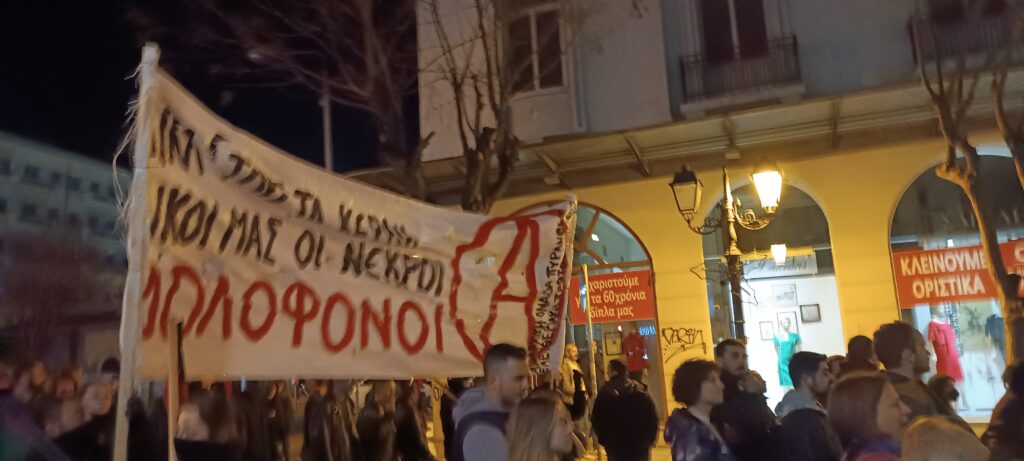 Ο κόσμος που συγκεντρώθηκε στο άγαλμα Βενιζέλου χειροκροτούσε συνεχώς όσες και όσους τοποθετήθηκαν στη συγκέντρωση συνδέοντας το αίτημα για ασφάλεια στη ζωή μας με τα μηνύματα ενάντια στην πατριαρχία και την κουλτούρα του βιασμού. «Μετρηθήκαμε και είμαστε λιγότερες» φώναξαν φεμινιστικές συλλογικότητες. Τα φεμινιστικά συνθήματα ήταν πολλά καθώς και τα μπλοκ φοιτητικών συλλόγων και πολιτικών συλλογικοτήτων που βγήκαν για δεύτερη φορά μέσα στην ημέρα εκφράζοντας την οργή τους για τις πολιτικές που δολοφονούν. «Δολοφόνοι», «Καμιά ασυλία από την οργή του λαού», «να γκρεμίσουμε κράτος και πατριαρχία», «Δεν θα ξαναέχουν την άνεση της σιωπής μας», «Μας φύτεψαν τον φόβο, μα βγάλαμε φτερά». Και οι δύο διαδηλώσεις πέρασαν από τον σταθμό των τρένων όπου ο κόσμος παρέμεινε για πολλή ώρα ενώ ένα κομμάτι της πορείας κατέληξε στο ΥΜΑΘ και ένα άλλο στο άγαλμα Βενιζέλου.
