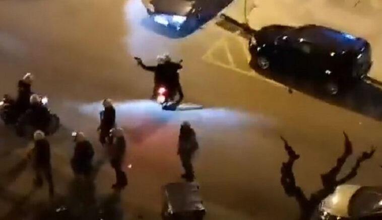 Μπάτσος πατάει με το μηχανάκι άνθρωπο που απλά στέκεται στο πεζοδρόμιο