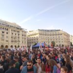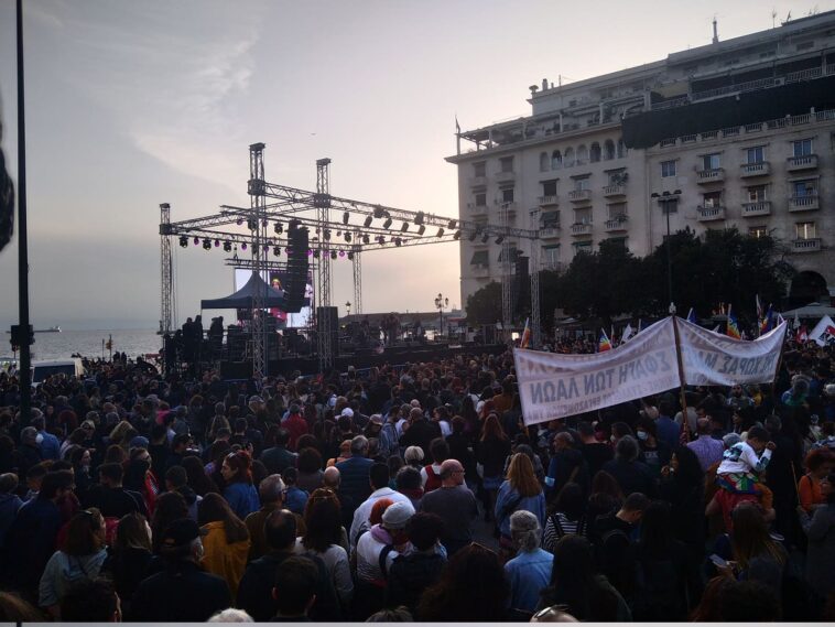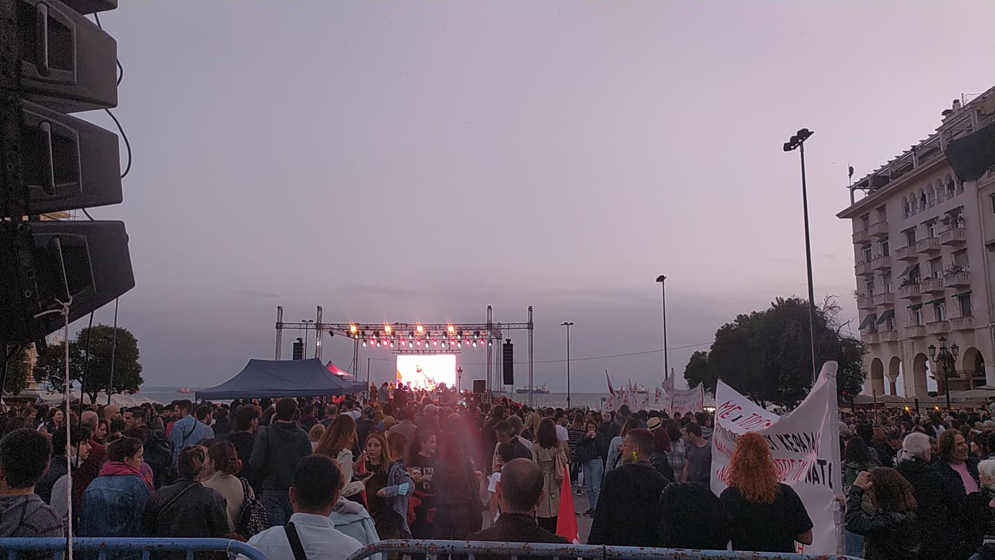 Χιλιάδες πολίτες έδωσαν το παρόν στην αντιπολεμική συναυλία που διοργάνωσε ο Σύλλογος Μουσικών Βορείου Ελλάδας και o Πανελλήνιος Μουσικός Σύλλογος με τη στήριξη του Κοινωνικού Ιατρείου Αλληλεγγύης και Εργατικών Σωματείων της Θεσσαλονίκης.