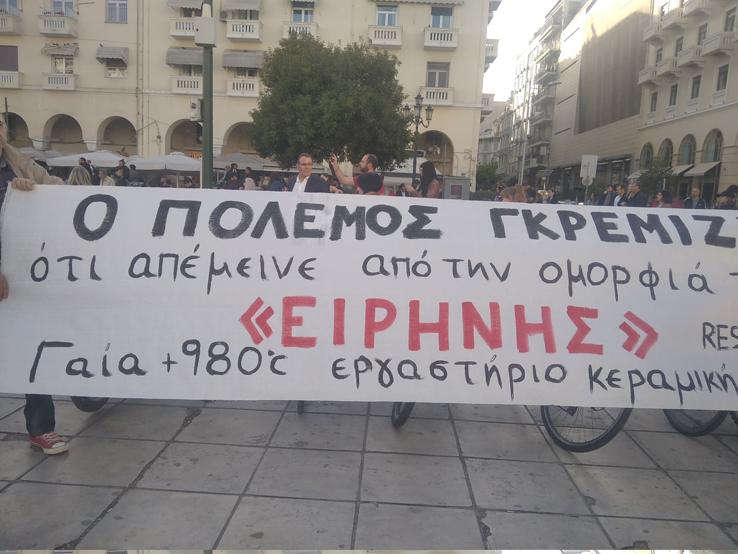 Ένα μήνυμα ενάντια στην εισβολή του ρώσικου στρατού στην Ουκρανία αλλά και ενάντια στη συμμετοχή της Ελλάδας σε αυτόν τον πόλεμο μέσω αποστολής οπλισμού και διευκόλυνσης της πολεμικής προπαρασκευής του ΝΑΤΟ και της ΕΕ.