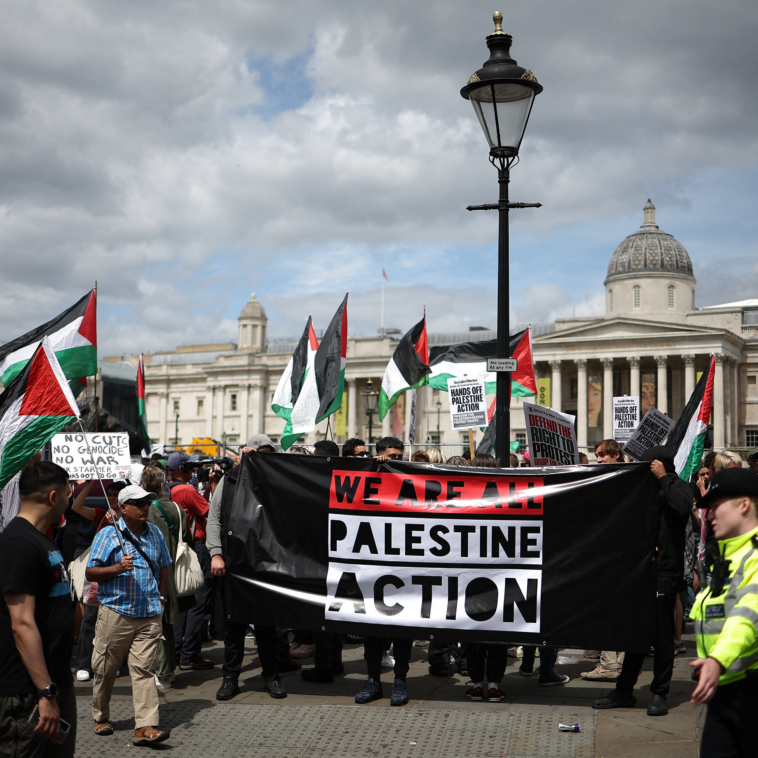 Στο Ηνωμένο Βασίλειο, οι διαδηλώσεις κατά της γενοκτονίας στη Γάζα ήταν μαζικές, όπως και σε άλλες ευρωπαϊκές πρωτεύουσες. Κατά τη διάρκεια αυτών των δύο και πλέον ετών γενοκτονικής εκστρατείας του Ισραήλ στη Γάζα, έγιναν πολλές πορείες με αίτημα την επιβολή εμπάργκο όπλων στο Ισραήλ, και τον τερματισμό των σχέσεων με το Ισραήλ, στο Λονδίνο και σε άλλες βρετανικές πόλεις. Ενώ το Ηνωμένο Βασίλειο, ο Καναδάς και η Αυστραλία αναγνώρισαν επίσημα την Παλαιστίνη σε μια συντονισμένη δήλωση στις 21 Σεπτεμβρίου, η καταστολή των Παλαιστινίων πολιτών από το Ηνωμένο Βασίλειο έχει επανειλημμένα γίνει πρωτοσέλιδο στα μέσα ενημέρωσης. Νομικοί εμπειρογνώμονες και ηγέτες συνδικάτων τονίζουν ότι ο χαρακτηρισμός της Palestine Action ως τρομοκρατικής οργάνωσης όχι μόνο επηρεάζει τις διαμαρτυρίες κατά της γενοκτονίας, αλλά παραβιάζει και το δικαίωμα στην ειρηνική διαμαρτυρία. «Η απαγόρευση της Παλαιστινιακής Δράσης στο Ηνωμένο Βασίλειο συγχέει την ελευθερία της έκφρασης με τρομοκρατικές πράξεις», δήλωσε ο Ύπατος Αρμοστής για τα Ανθρώπινα Δικαιώματα, Φόλκερ Τουρκ, στις 25 Ιουλίου, προτρέποντας τις αρχές της χώρας να ανακαλέσουν την απόφαση. Το Ηνωμένο Βασίλειο απαγόρευσε την Παλαιστινιακή Δράση βάσει του Νόμου περί Τρομοκρατίας του 2000. Σύμφωνα με αυτόν τον νόμο, η συμμετοχή στην οργάνωση ή η δημόσια έκφραση υποστήριξης προς αυτήν μπορεί να οδηγήσει σε ποινικές κυρώσεις, συμπεριλαμβανομένων προστίμων και ποινών φυλάκισης έως και 14 ετών. Εκείνη την εποχή, ο Türk προειδοποίησε ότι η απόφαση φαινόταν «δυσανάλογη», «περιττή» και «απαράδεκτη» και ότι παραβίαζε «τις διεθνείς υποχρεώσεις του Ηνωμένου Βασιλείου για τα ανθρώπινα δικαιώματα».