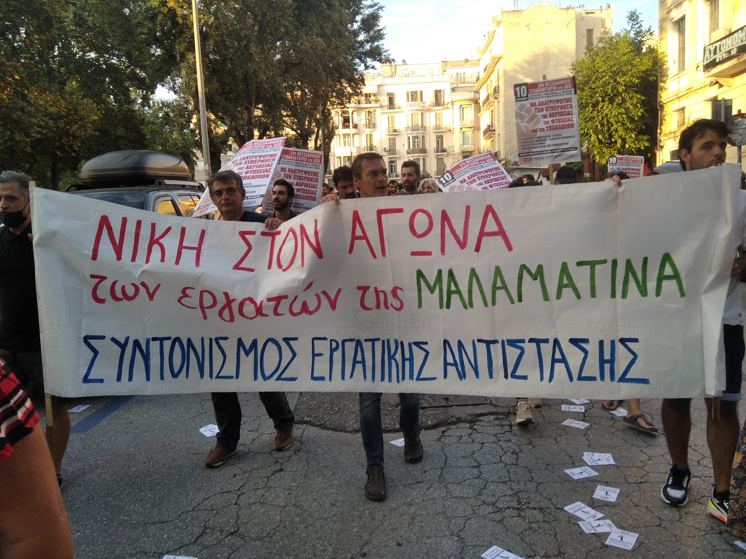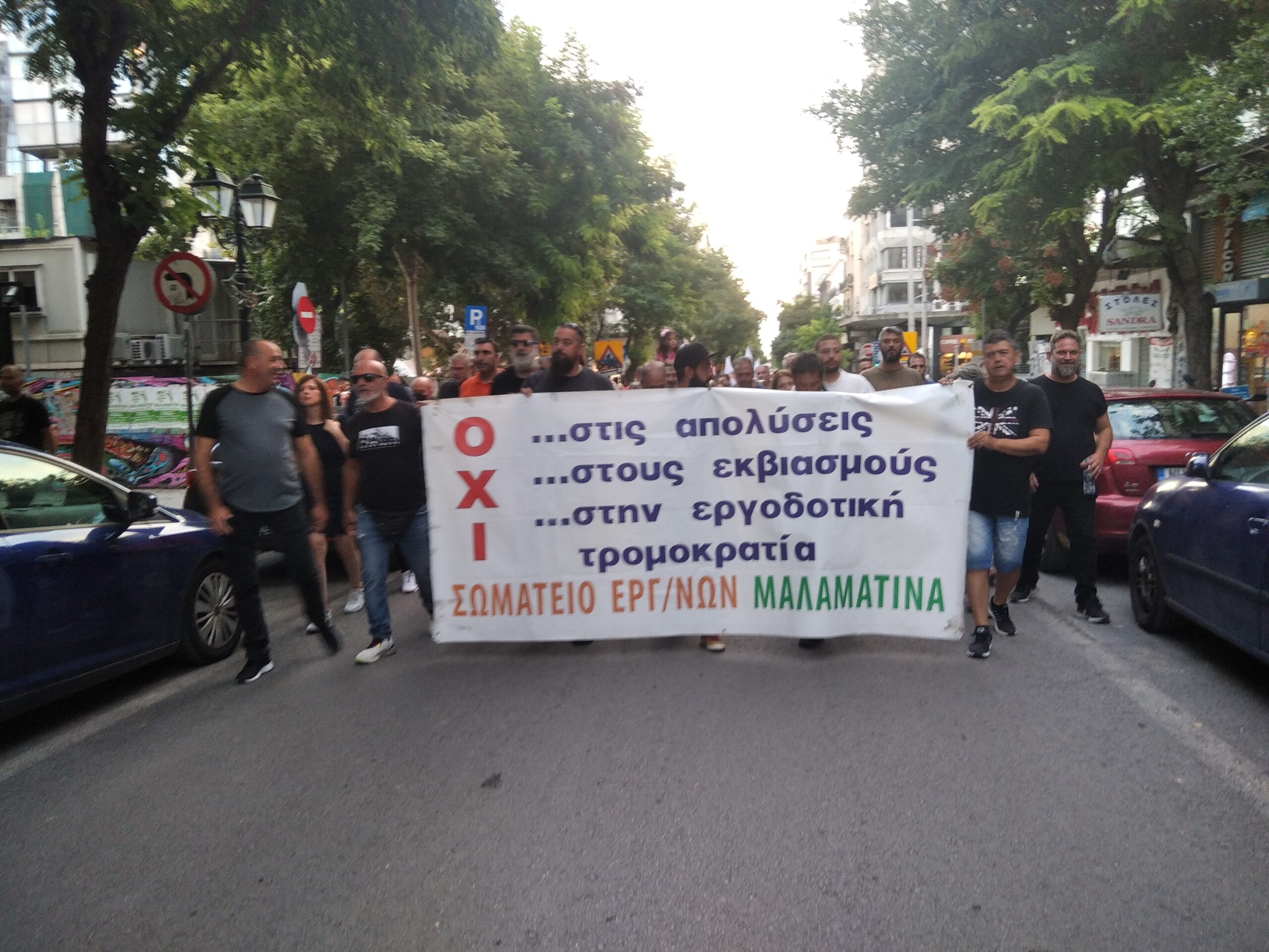 Καθ’ όλη τη διάρκεια της συγκέντρωσης αλλά και της διαδήλωσης που στην κεφαλή της είχε τους απολυμένους εργαζόμενους της «Μαλαματίνα», χιλιάδες άτομα φώναζαν συνθήματα «νίκης της απεργίας των εργαζομένων», κατά του νόμου Χατζηδάκη που αποτελεί εφαλτήριο για την κατάργηση των εργασιακών δικαιωμάτων αλλά και υπέρ μιας εργασίας με κατοχυρωμένα δικαιώματα και συλλογικές συμβάσεις εργασίας. Αυτό άλλωστε διεκδικούν με τον πολυήμερο αγώνα τους οι απεργοί που εκτός από την ανάκληση των απολύσεων αντιστέκονται στην μεθόδευση της εργοδοσίας που με την αστυνομοκρατία, τη βία των ΜΑΤ και τις απολύσεις επιχειρεί να επιβάλλει ένα καθεστώς ατομικών συμβάσεων και μια ακόμη μεγαλύτερη ελαστικοποίηση των σχέσεων εργασίας. Να σημειωθεί ότι κατά τη διάρκεια της απεργίας των εργαζομένων η νέα διοίκηση της «Μαλαματίνα» έχει προχωρήσει σε προσλήψεις ατόμων με ατομικές συμβάσεις προκειμένου να τους χρησιμοποιήσει ως απεργοσπαστικό μηχανισμό.
