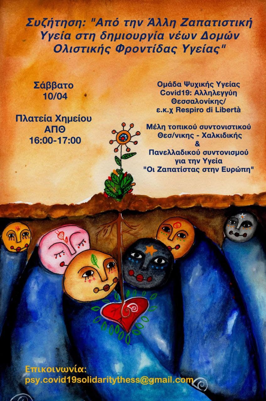 Ομάδα Ψυχικής Υγείας-Covid19: Αλληλεγγύη Θεσσαλονίκης / ε.κ.χ. Respiro di Libertà, μέλος Τοπικού Συντονισμού Θεσσ.-Χαλκ. & Πανελλαδικού Θεματικού Συντονισμού για την Υγεία “Οι Ζαπατίστας στην Ευρώπη”