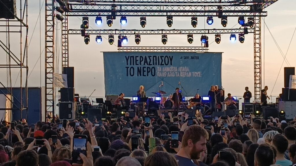 Η Φωτεινή Βελεσιώτου, ο Θανάσης Παπακωνσταντίνου, ο Φοίβος Δεληβοριάς, ο Δημήτρης Μυστακίδης αλλά και τα μουσικά σχήματα «Πριγκιπέσσα» και «Χειμερινοί Κολυμβητές» έδωσαν τη φωνή τους στον πιο όμορφο σκοπό υπεράσπισης του νερού και κάλεσαν με τα δικά τους μηνύματα τον κόσμο να αντέξει, να πάρει δυνάμεις από αυτή τη συνεύρευση και να συνεχίζει να αγωνίζεται.