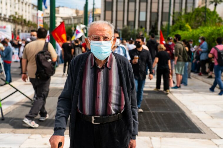 Λάζαρος Κυρίτσης 101 χρονών. Θρυλικός μαχητής του ΕΛΑΣ στην Εθνική Αντίσταση, στέλεχος του ΕΑΜ το 1942, Μακρονησιώτης, πολιτικός κρατούμενος της Χούντας, εχθές στην απεργιακή συγκέντρωση στο Σύνταγμα.