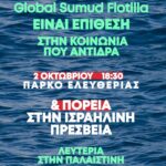 Η Γάζα βρίσκεται εδώ και δύο χρόνια υπό συνθήκες γενοκτονίας: δεκάδες χιλιάδες νεκροί, ισοπεδωμένες πόλεις, κατεστραμμένα νοσοκομεία και μαζικός λιμός. Το Ισραήλ στοχοποιεί αμάχους, δημοσιογράφους αλλά και κάθε μορφή διεθνούς αλληλεγγύης που επιχειρεί να τους στηρίξει».
