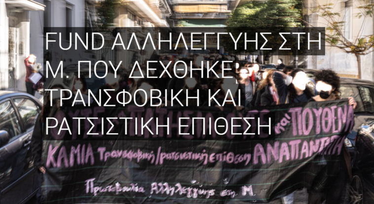 Κάλεσμα οικονομικής στήριξης της Μ., τρανς προσφύγισσας από το Πακιστάν, που δέχθηκε τρανσφοβική και ρατσιστική επίθεση απευθύνουν αλληλέγγυα άτομα που πραγματοποιούν καμπάνια για την κάλυψη των δικαστικών εξόδων της και άλλων επείγουσων αναγκών.