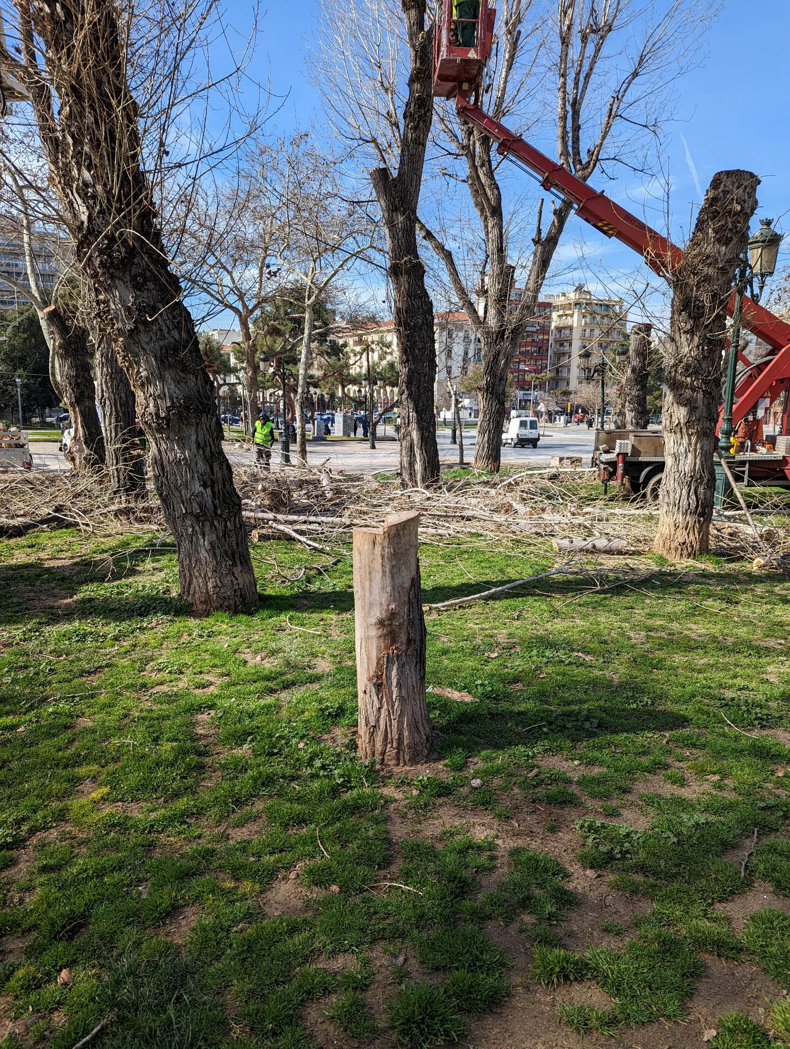 UPD 14:55: Καταγγελία για την μη τήρηση των μέτρων ασφαλείας κατά την κλάδευση και κοπή των δέντρων κατατέθηκε στην εισαγγελία της Θεσσαλονίκης από τη δικηγόρο της πρωτοβουλίας «Σώστε τα δέντρα».
