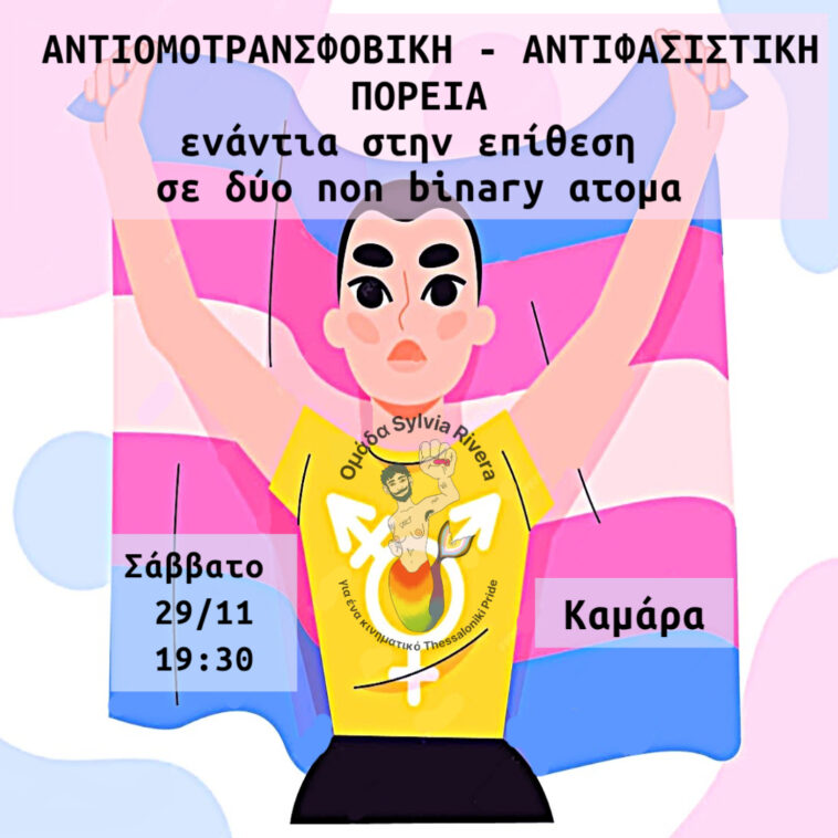 Η συλλογικότητα καλεί σήμερα Σάββατο 29 Νοεμβρίου στις 19:30 στην Καμάρα σε μια αντιτρανσφοβική και αντιφασιστική πορεία.