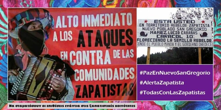 Από τα ανυπότακτα και επαναστατημένα εδάφη μας καλούμε την αλληλέγγυα με τους ζαπατίστας εθνική και διεθνή κοινότητα να εκφραστεί υπέρ της ζωής και ενάντια στις απειλές θανάτου και τις επιθέσεις των ένοπλων ομάδων.