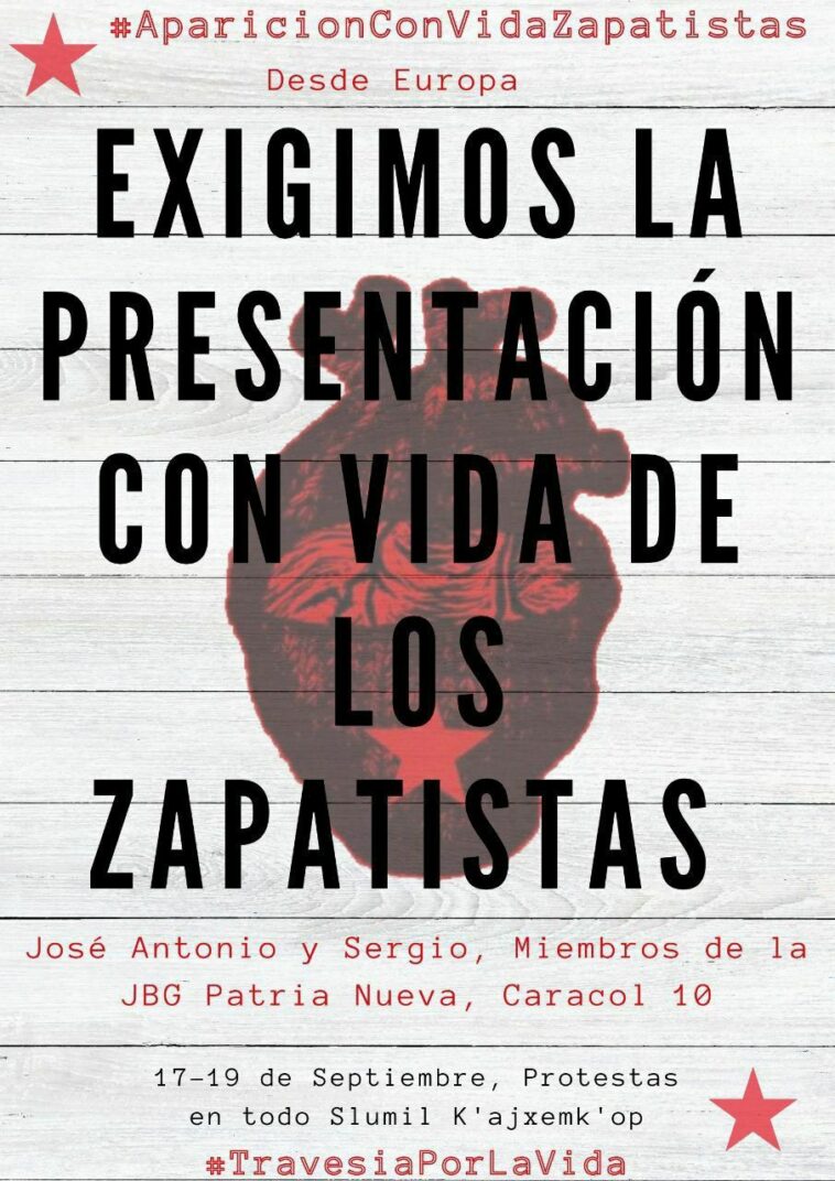 Απαιτούμε να εμφανιστούν ζωντανοί οι βάσεις στήριξης του EZLN, Jose Antonio Sanchez Juarez και Sebastian Nunez Perez.