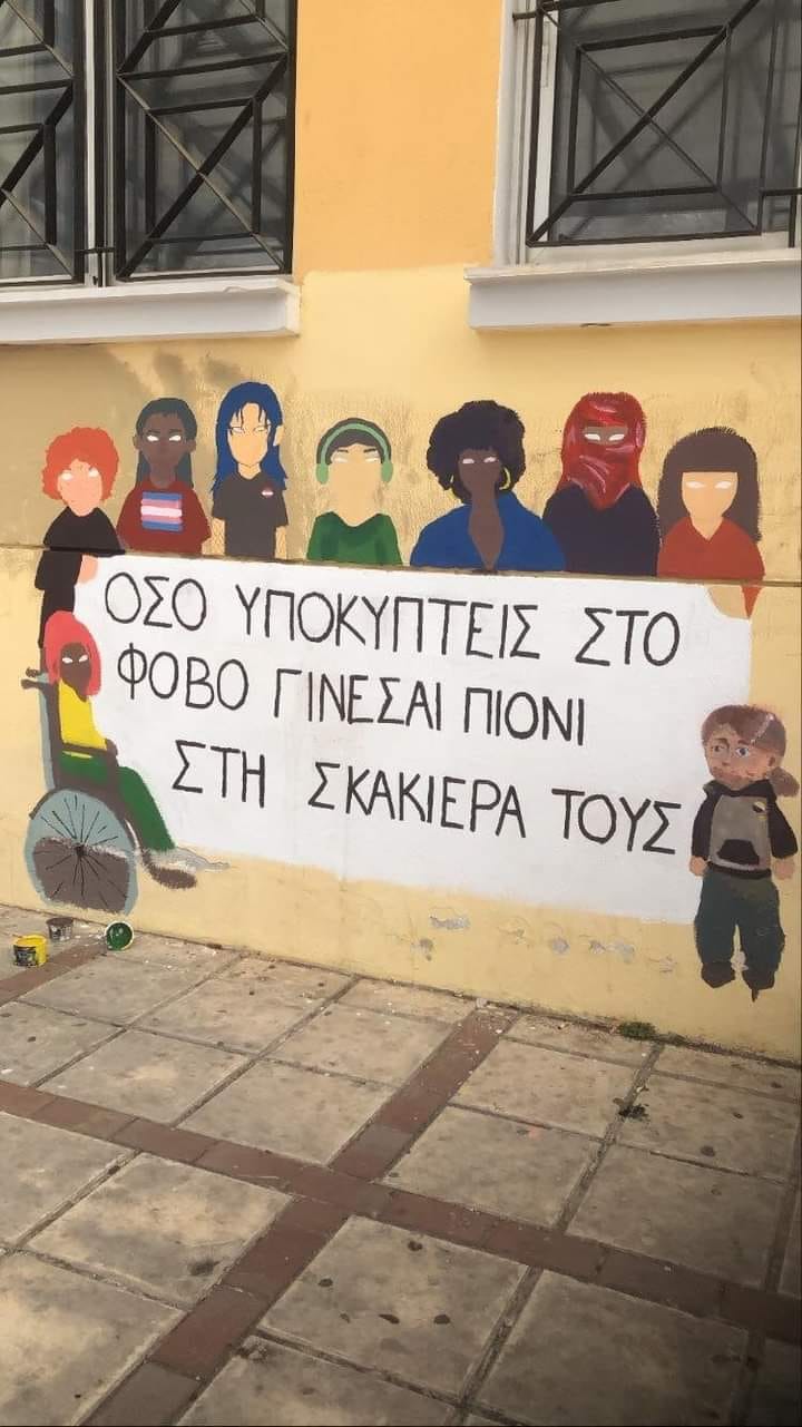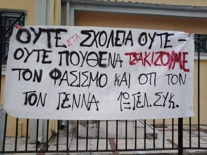 Την ίδια στιγμή είναι δεκάδες οι τα (είτε υπό κατάληψη είτε σε λειτουργία) σχολεία της πόλης που παίρνουν θέση με γκράφιτυ και πανό ενάντια στον φασισμό.