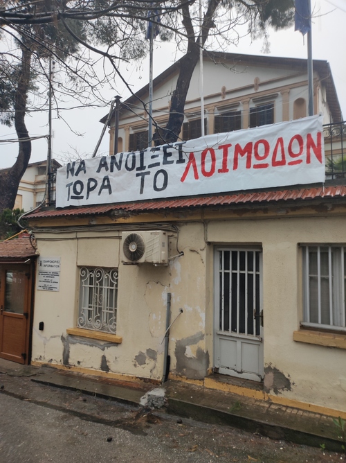 «Το Κοινωνικό Ιατρείο Αλληλεγγύης Θεσσαλονίκης καλεί τους κατοίκους, τις συλλογικότητες, τα σωματεία και τους φορείς της πόλης να στηρίξουν και να συμμετέχουν στην κατάληψη του κτιρίου του νοσοκομείου Λοιμωδών.