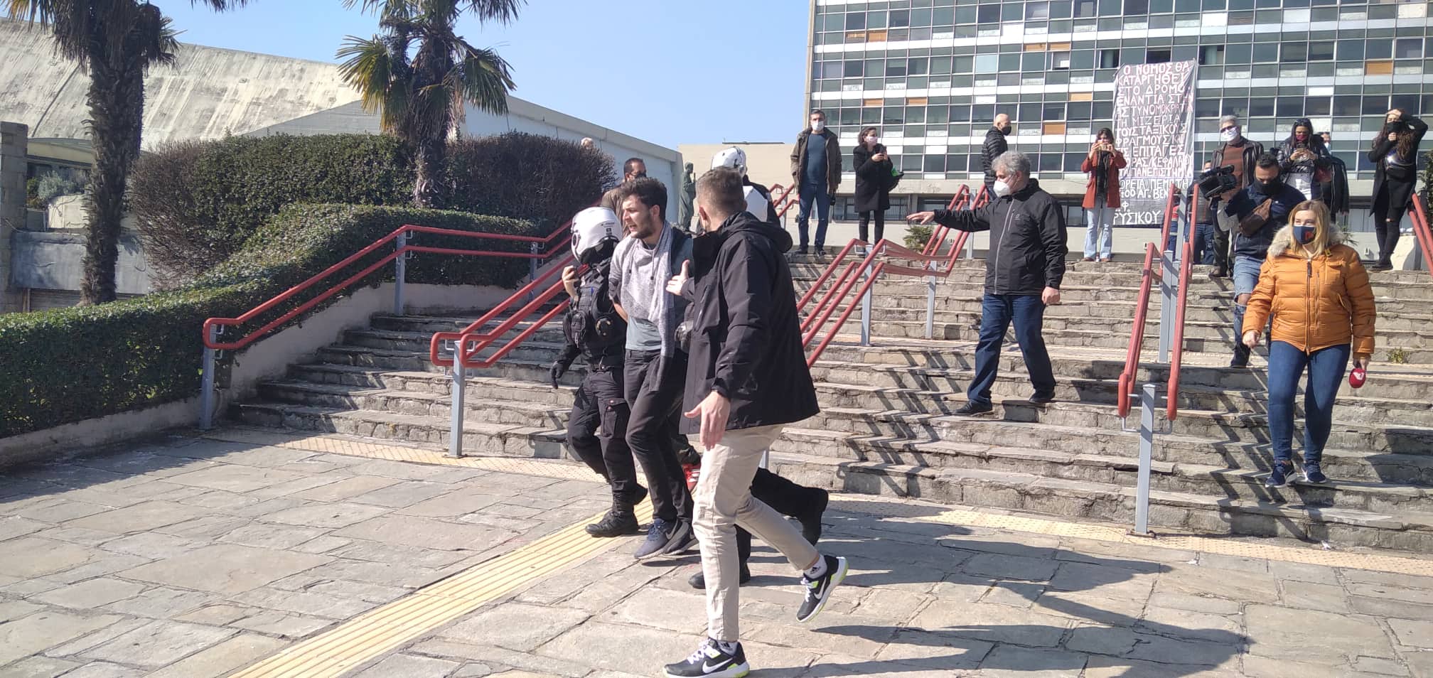 UPD 14:35 Σε λίγη ώρα αναμένεται να ξεκινήσει πορεία από το ΑΠΘ προς το κέντρο της πόλης. Αίτημα να αφεθούν ελεύθεροι οι φοιτητές και φοιτήτριες που αναίτια προσήχθησαν και συνελήφθησαν.