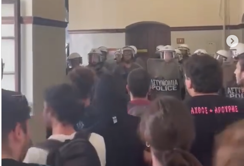Όπως καταγγέλλουν φοιτητικές παρατάξεις «η κινητοποίηση συνέχιζε μιας και ο πρύτανης δεν δεσμευόταν να καταγγείλει το συμβάν και την εταιρεία διαχείρισης, καθώς και να πάρει τα αναγκαία μέτρα για την λήξη της συστηματικής υποχρηματοδότησης της φοιτητικής μέριμνας». Ωστόσο λίγα λεπτά μετά στο κτίριο εισέβαλαν άνδρες της ΟΠΚΕ και των ΜΑΤ, ενώ σύμφωνα με τις πληροφορίες οι αστυνομικοί εγκλώβισαν τους φοιτητές και ακολούθησε καταστολή με γκλομπ και κρότου λάμψης. Στη συνέχεια άνδρες των ΜΑΤ προχώρησαν σε πέντε προσαγωγές οι οποίες μετατράπηκαν σε συλλήψεις με τις κατηγορίες για διατάραξη κοινής ειρήνης, απείθεια, παράνομη κατακράτηση. Οι φοιτητές θα περάσουν από το Αυτόφωρο αύριο το πρωί.