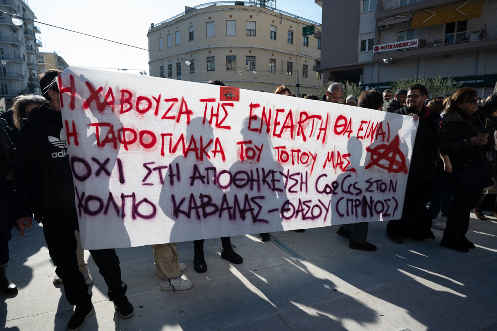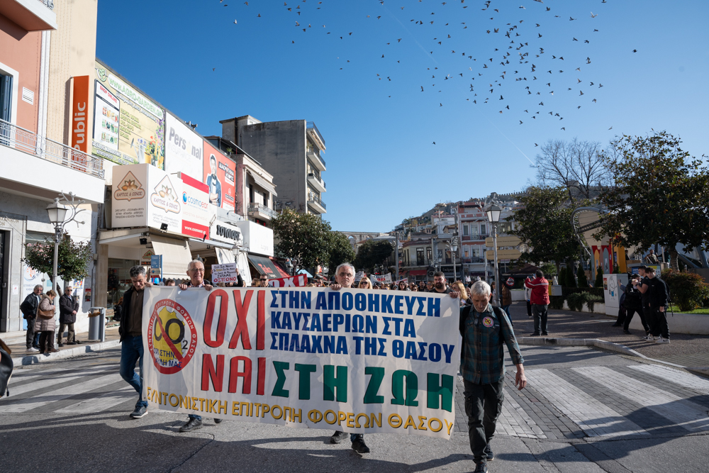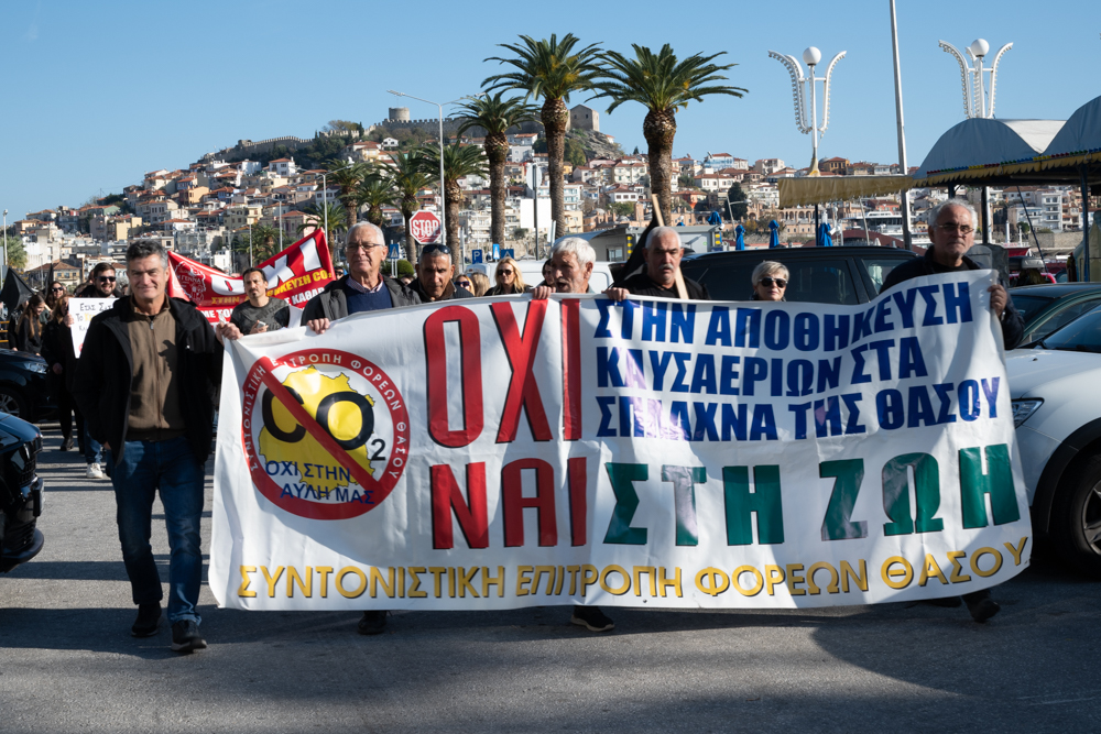 Χιλιάδες πολίτες από τη Θάσο και την ευρύτερη περιοχή της Καβάλας συγκεντρώθηκαν την Πέμπτη στην Πλατεία Καπνεργάτη στη μαζικότερη έως τώρα κινητοποίηση (πάνω από 2.000 άτομα) ενάντια στο κολοσσιαίο σχέδιο αποθήκευσης διοξειδίου του άνθρακα στην υποθαλάσσια περιοχή του κόλπου της Καβάλας από μεγάλη πολυεθνική Ισραηλινών συμφερόντων. Όπως καταγγέλλεται εδώ και μήνες από την τοπική κοινωνία, με «συμμάχους» σε καίριες θέσεις, δίχως επιστημονικά στοιχεία, δίνονται οι απαραίτητες εγκρίσεις για το έργο παρά τις διαφωνίες επιστημόνων και τοπικών φορέων.
