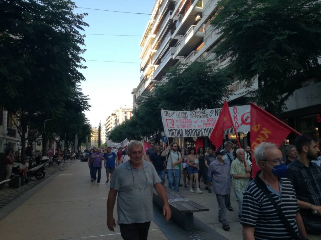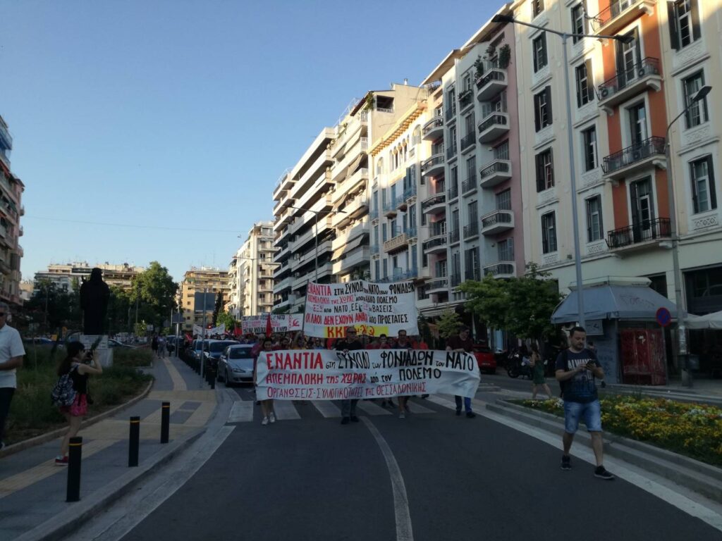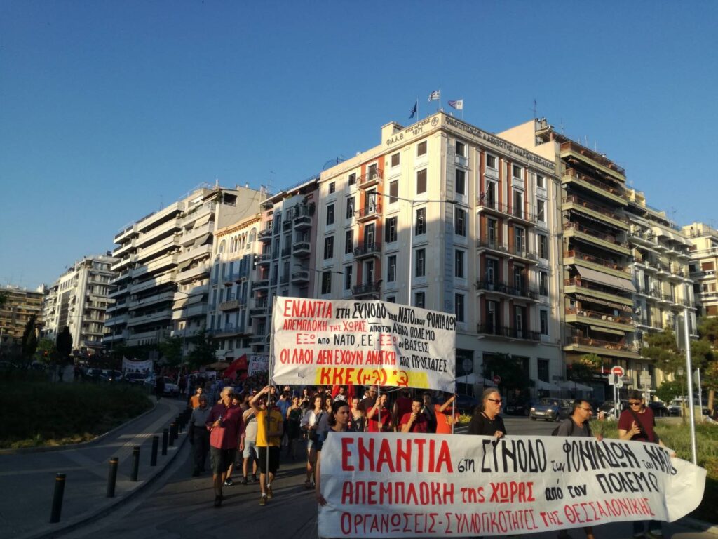 Εκατοντάδες διαδηλωτές και διαδηλώτριες πραγματοποίησαν πορεία ενάντια στη σύνοδο του ΝΑΤΟ το απόγευμα της Τετάρτης 29 Ιουνίου στο κέντρο της Θεσσαλονίκης.