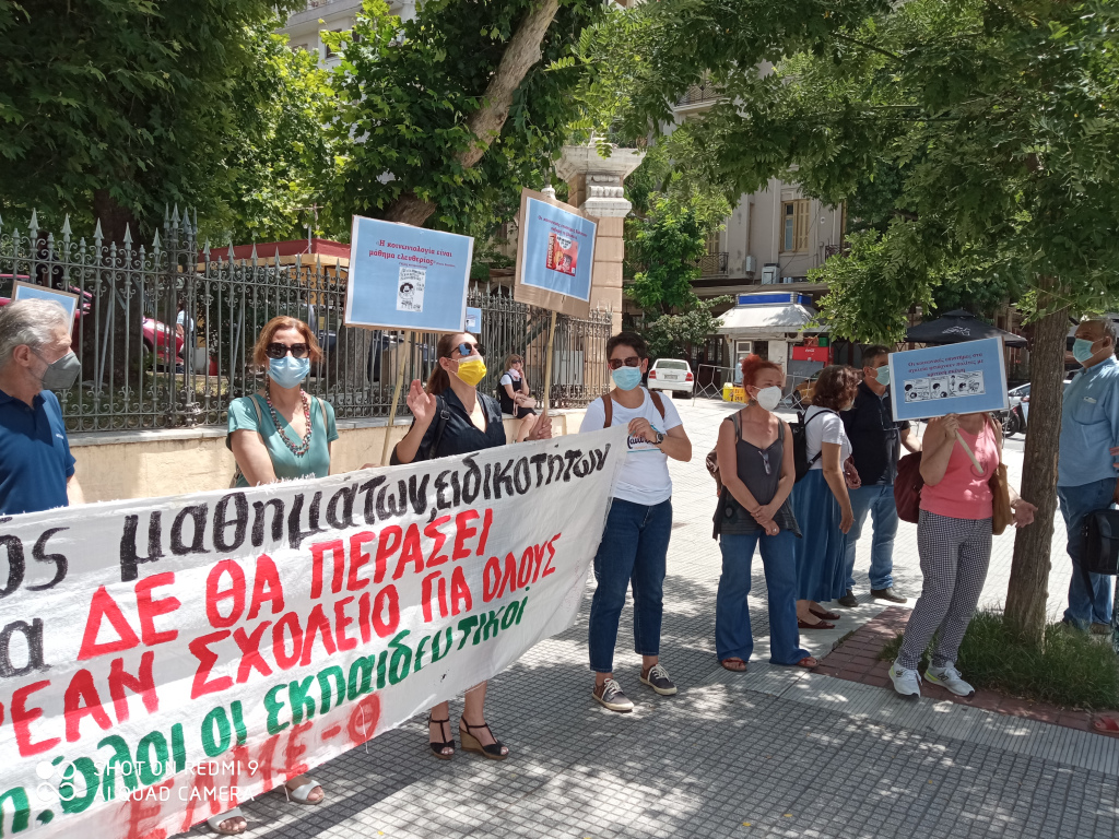 Σε διαμαρτυρία προχώρησαν την Τετάρτη 23 Ιουνίου στο υπουργείο Μακεδονίας-Θράκης εκπαιδευτικοί για τον εξοβελισμό των κοινωνικών επιστημών και των καλλιτεχνικών μαθημάτων, μετά από κάλεσμα των ΕΛΜΕ της Θεσσαλονίκης. Αντίστοιχη διαμαρτυρία έγινε στην Αθήνα, στο υπουργείο Παιδείας, μετά από κάλεσμα της ΟΛΜΕ.