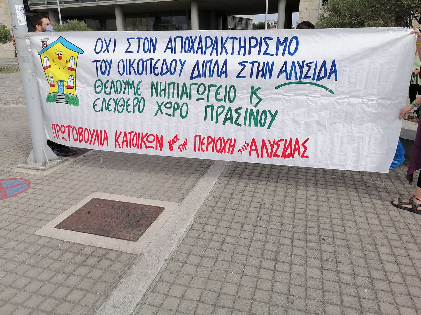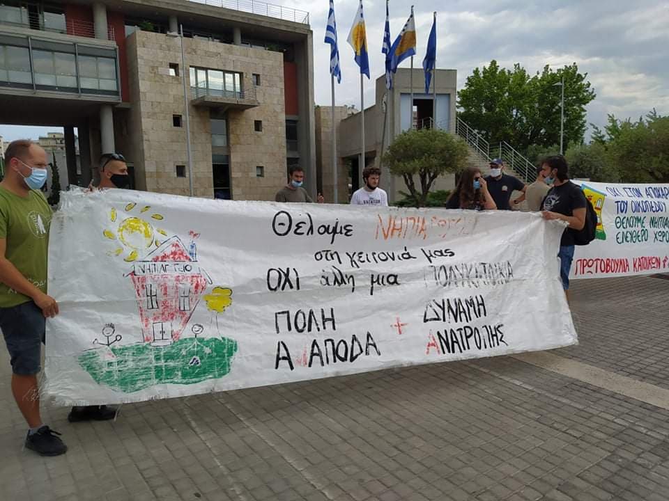Οι συγκεντρωμένοι ζήτησαν για μία ακόμη φορά να ανακληθεί η απόφαση αποχαρακτηρισμού του οικοπέδου που βρίσκεται δίπλα στο παλιό εργοστάσιο της Αλυσίδας και το οποίο θα στέγαζε ένα νέο νηπιαγωγείο στην περιοχή.