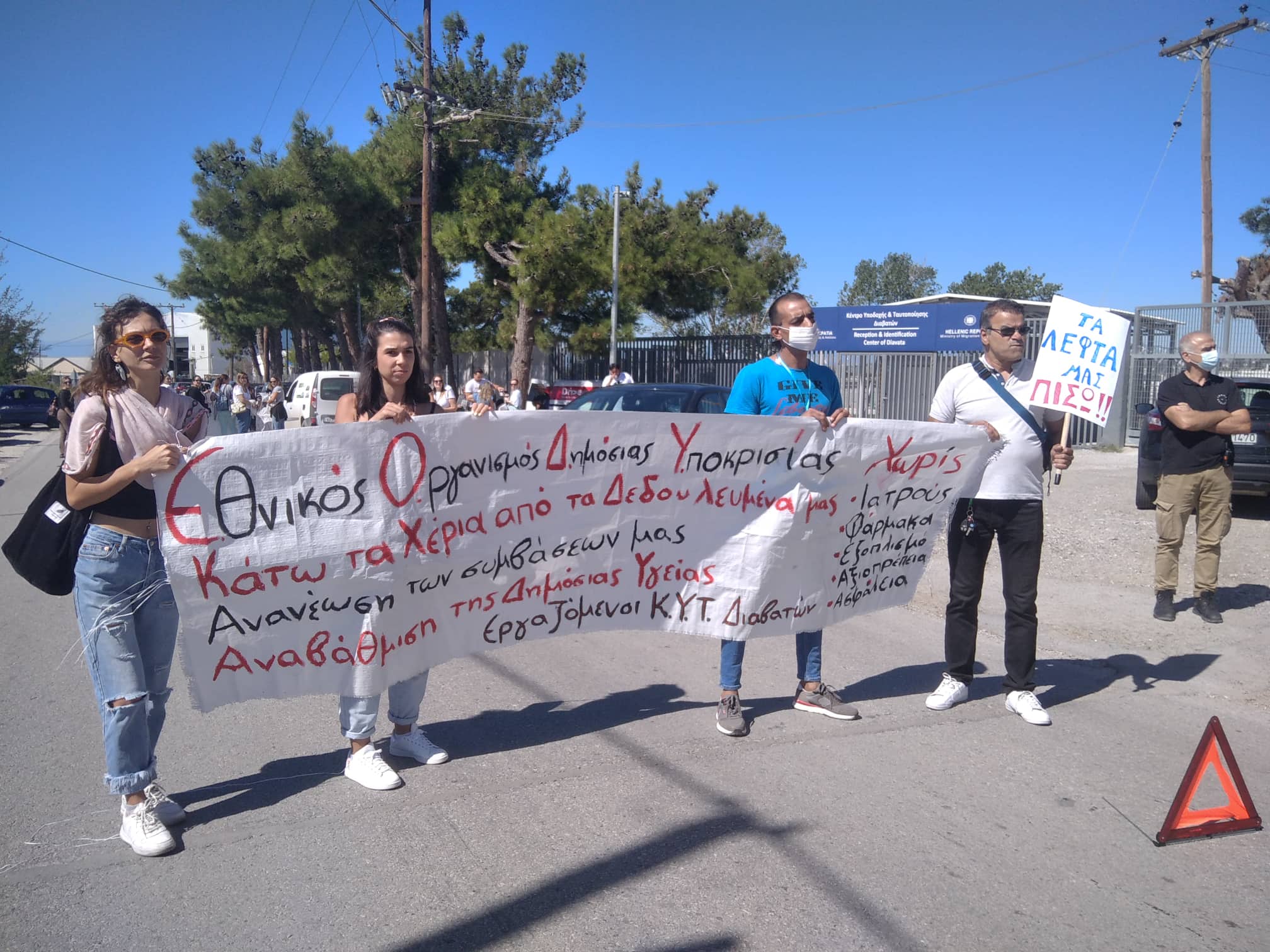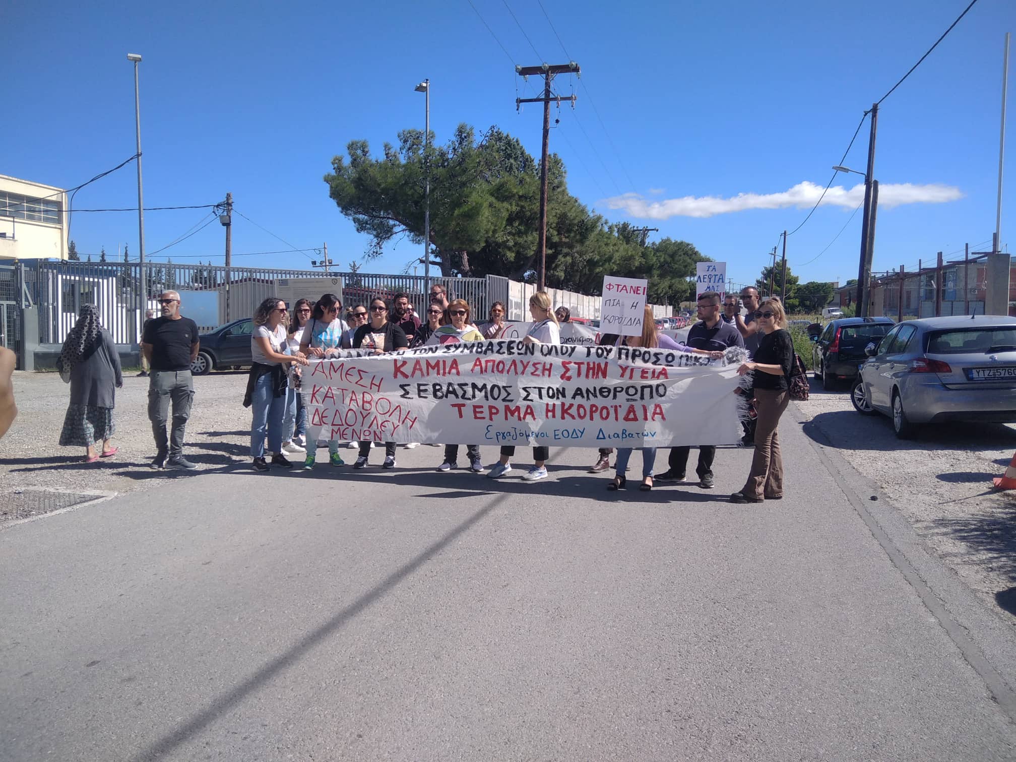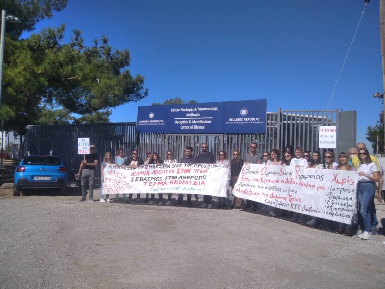 Τις άθλιες συνθήκες στις οποίες εργάζονται αλλά και την αδυναμία κάλυψης των αναγκών των προσφύγων περιέγραψαν εργαζόμενοι-ες στη σημερινή διαμαρτυρία στα Διαβατά. «Πολλές φορές καλούμαστε να βρούμε μόνοι μας λύση για να εξυπηρετήσουμε τον κόσμο, πολλοί από τους πρόσφυγες δε διαθέτουν ΑΜΚΑ, με αποτέλεσμα να μην μπορούμε καν να συνταγογραφήσουμε. Προσπαθούμε καθημερινά να βρούμε λύσεις χωρίς να υπάρχει κανένα κίνητρο εκ μέρους του εργοδότη» σημειώνει νοσηλευτής στο καμπ των Διαβατών.
