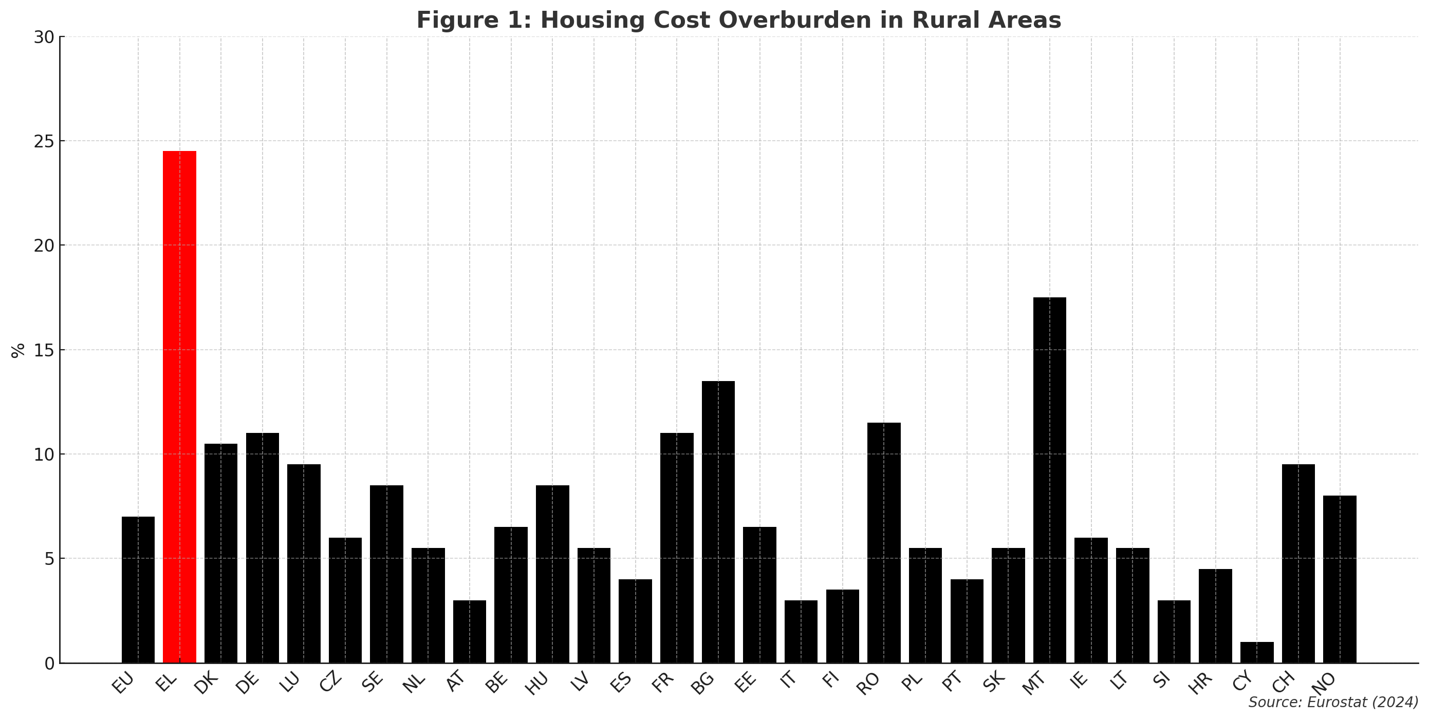 Σύμφωνα με τα στοιχεία της EU-SILC, η Ελλάδα βρίσκεται στην κορυφή της Ε.Ε. ως προς την επιβάρυνση από το κόστος στέγασης. Σε περιφερειακές πόλεις όπως η Νάουσα, η κρίση είναι πιο αφανής, αλλά εξίσου βίαιη: σιωπηλές εξώσεις, αόρατη αστεγία, ζωές που εξαφανίζονται από τα πολιτικά ραντάρ. Ταυτόχρονα, ολόκληρα τμήματα κατοικιών παραμένουν άδεια. Η αντίφαση ανάμεσα σε αφθονία και στέρηση δεν είναι απλώς αποτυχία πολιτικής. Είναι στρατηγική διακυβέρνησης μέσω διαχείρισης της επισφάλειας.